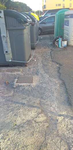 La Asociación de Vecinos Cristo de Telde insta al Ayuntamiento a arreglar y adecentar el punto de contenerización ubicado en la confluencia entre las calles Luis Doreste Silva y Profesor Lucas Arencibia Gil, junto al parque urbano de Arnao. Y también a corregir las deficiencias de la acera que bordea la explanada que se utiliza como aparcamiento.