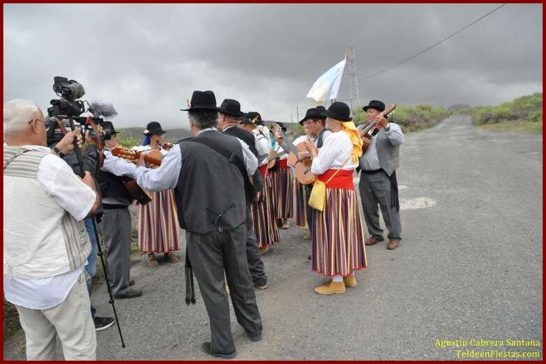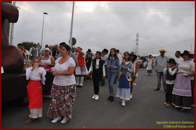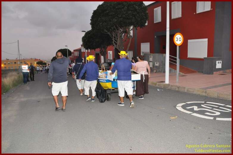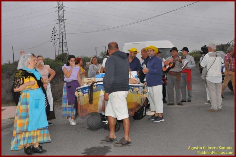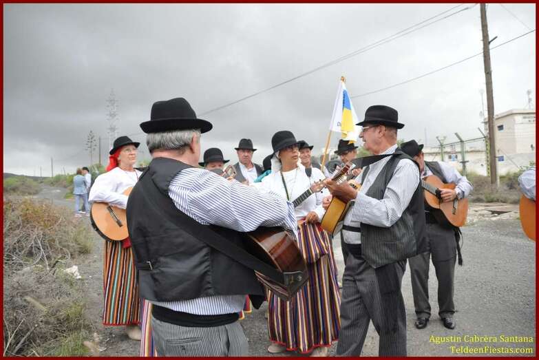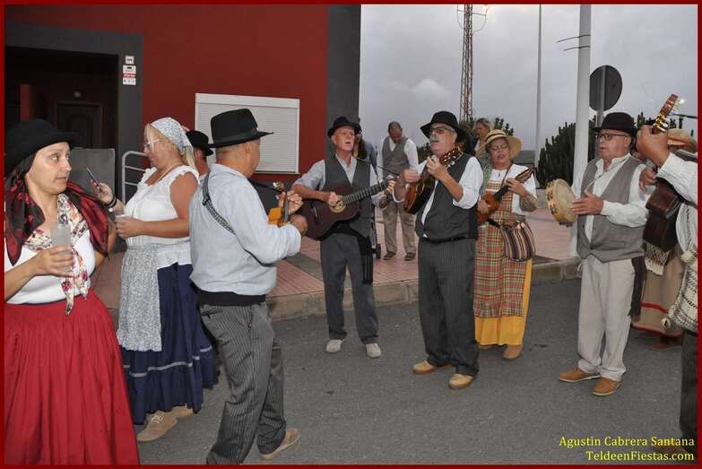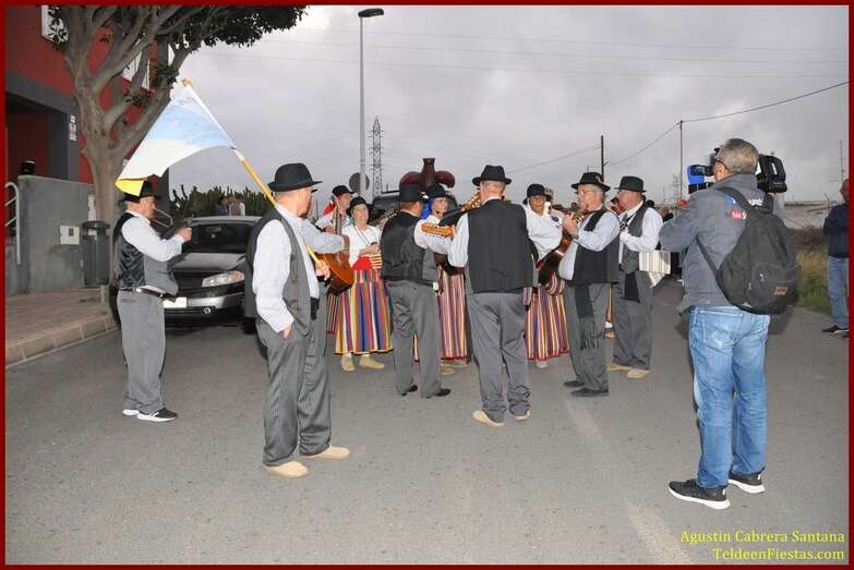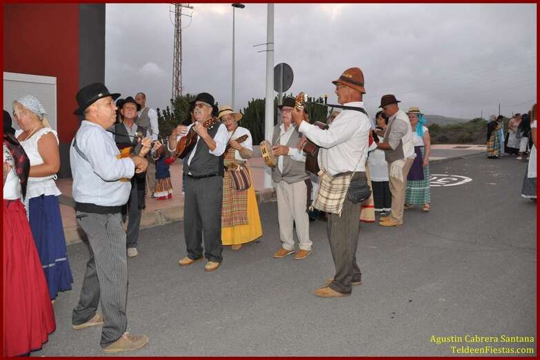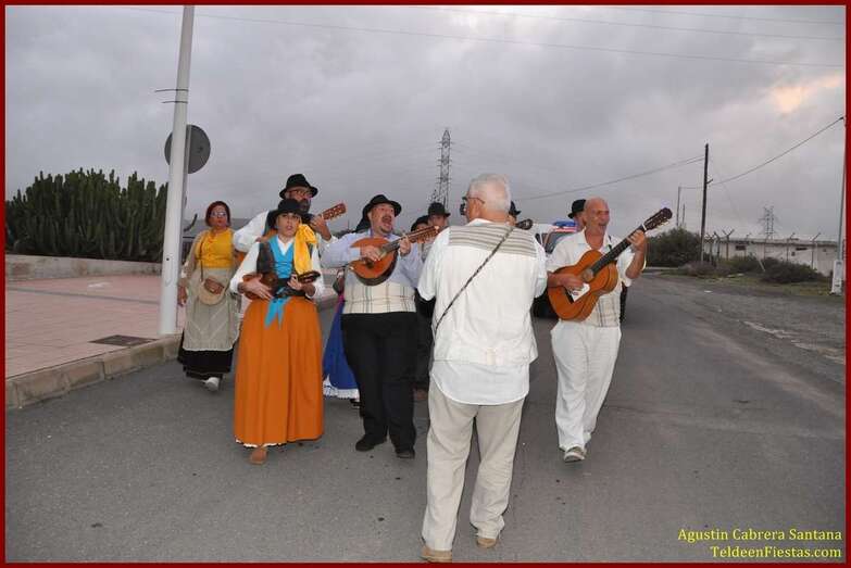 Caserones Altos brindó este sábado a la Virgen del Pilar, su patrona, una modesta romería-ofrenda que recorrió las principales calles del barrio con el acompañamiento de la parranda Goretes de Lourdes, de El Goro.