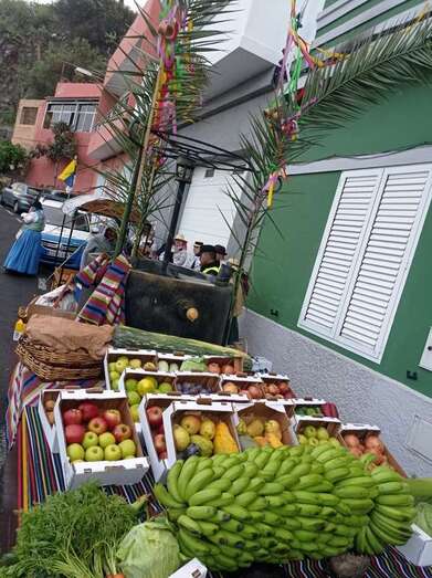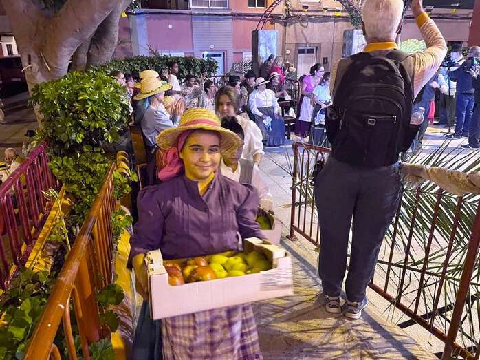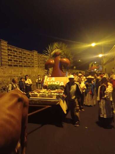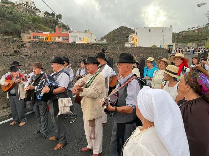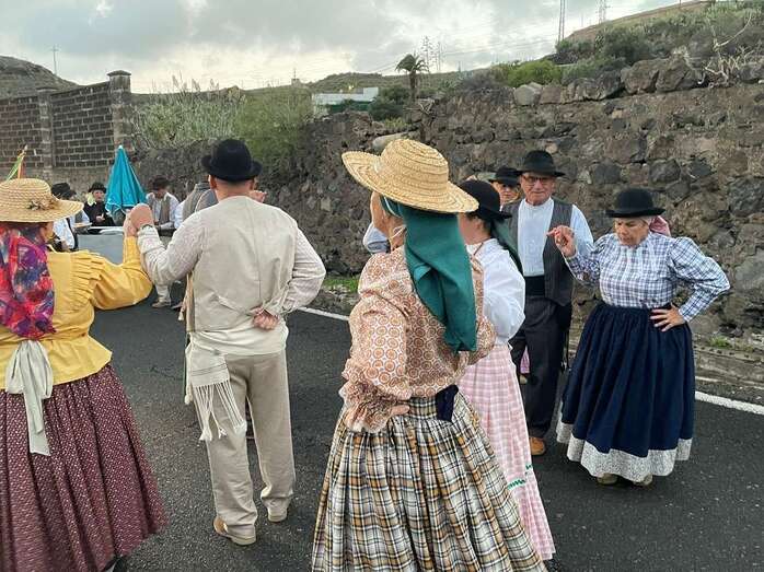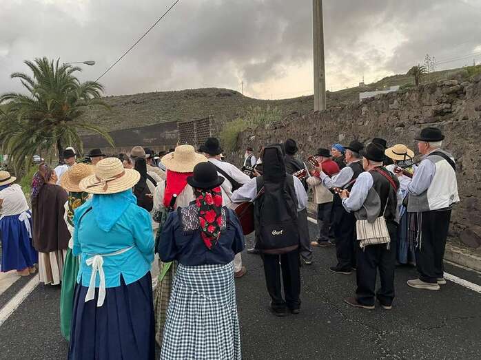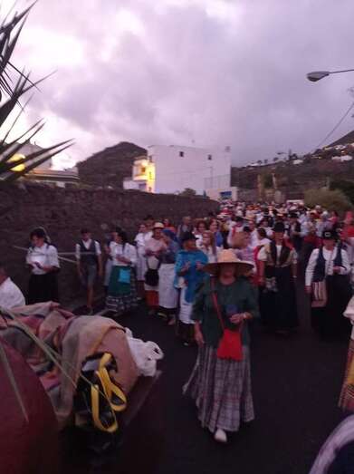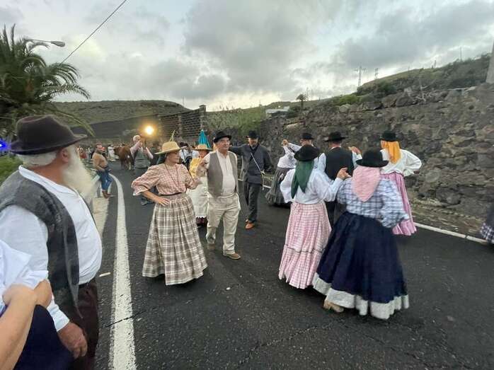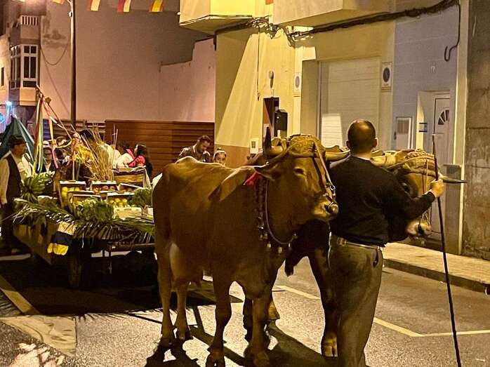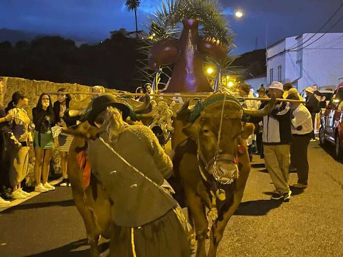 El desfile popular contó con la participación de tres carretas tiradas por bueyes que se pusieron en marcha pasadas las 18.30 horas en la carretera general de Lomo Magullo, a la altura del desvío para acceder a Tecén.