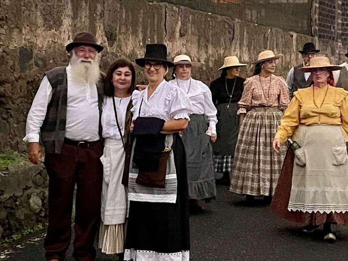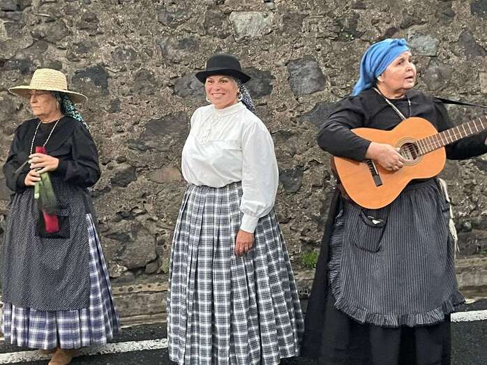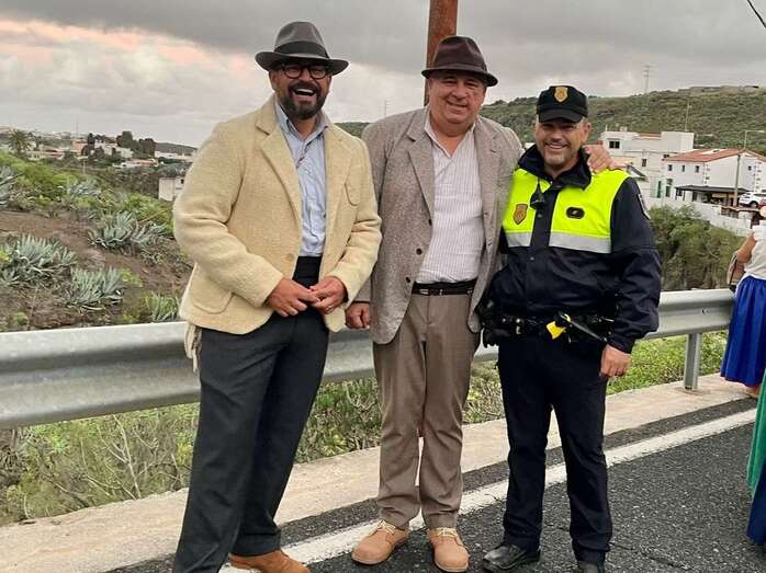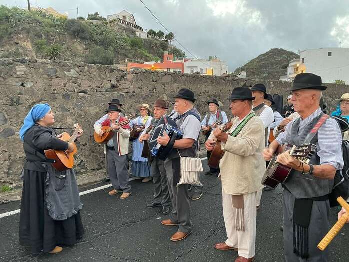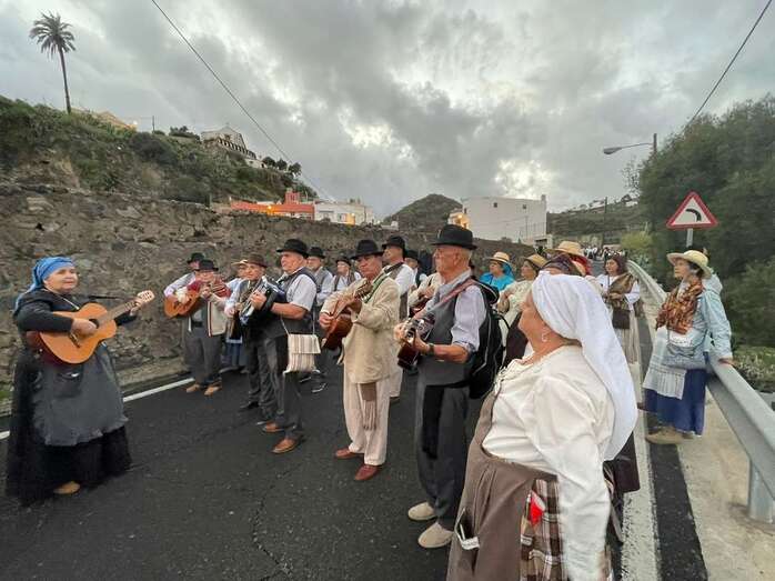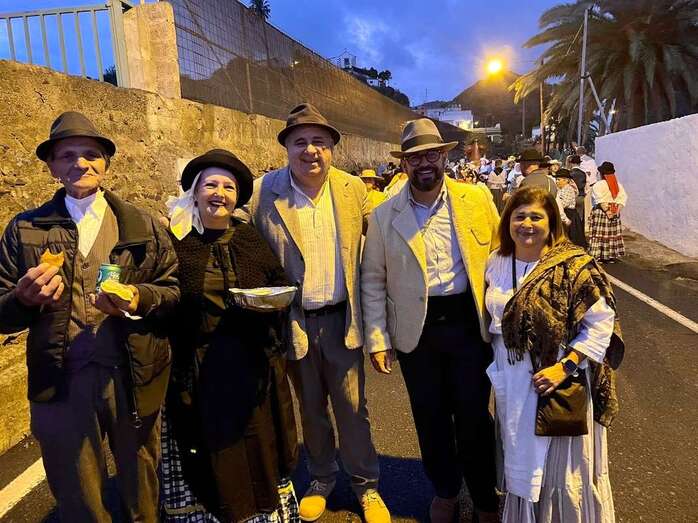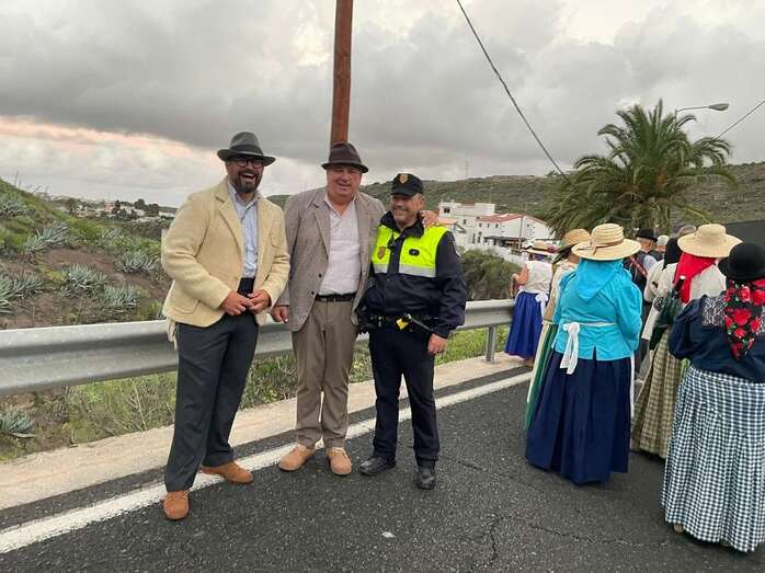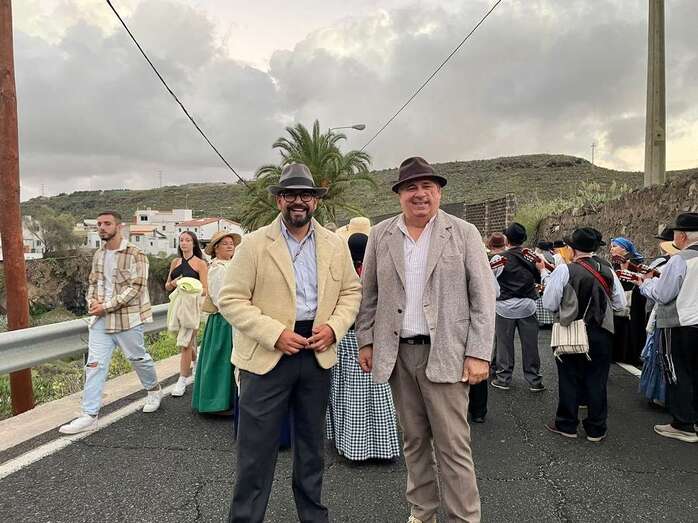 Los ediles Juan Martel y Jonay López acompañaron a los vecinos del Valle de los Nueve durante la romería y posterior ofrenda.