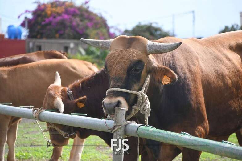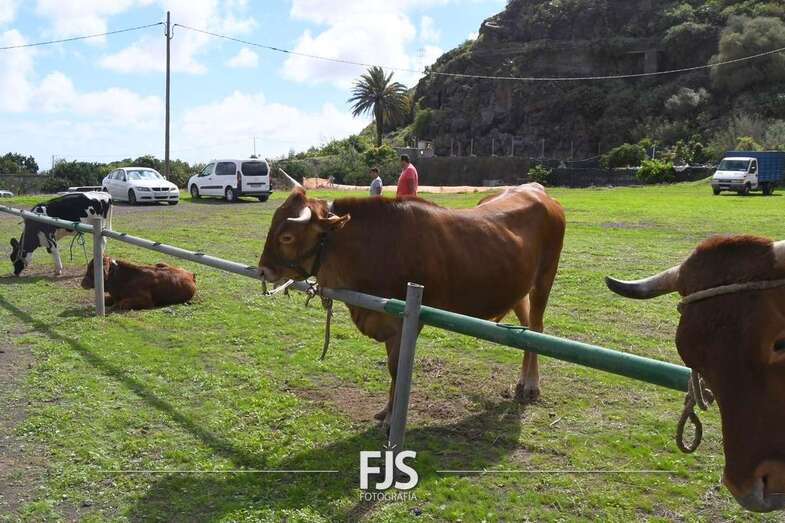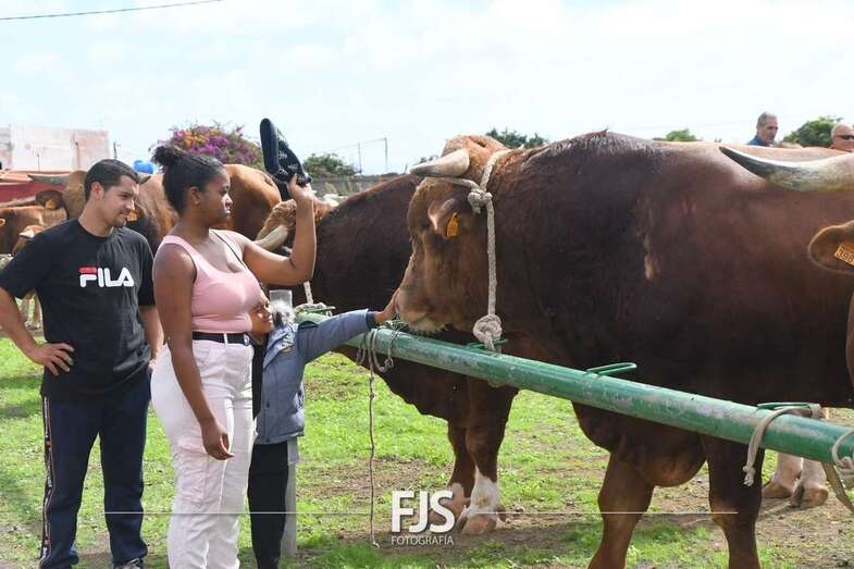 Unos 25 animales se dieron cita en la Feria de Ganado que se montó a partir de las 9 de la mañana como es habitual en unos terrenos aplanados emplazados en el margen izquierdo de la carretera que sube del Valle de los Nueve hacia Lomo Magullo y la cumbre grancanaria. Predominó el ganado vacuno procedentes de varios municipios de la isla y se exhibieron también unos pocos caballos y burros.