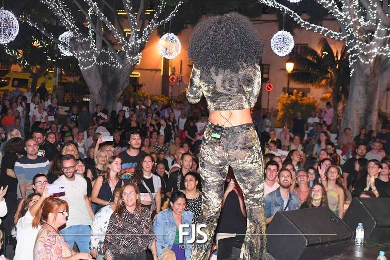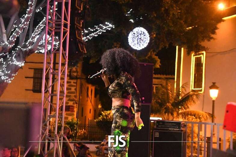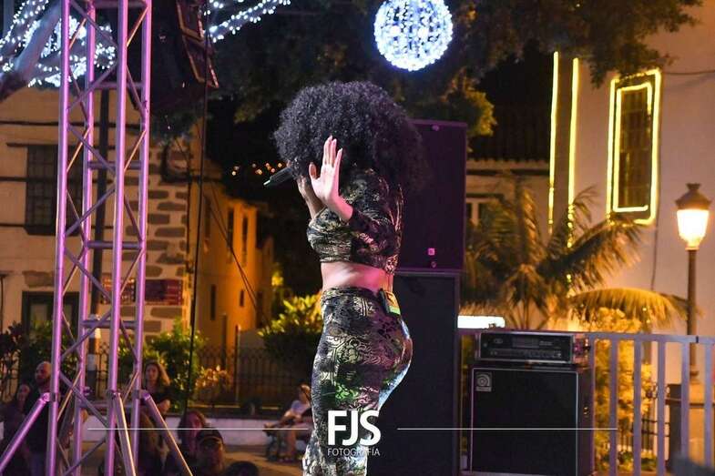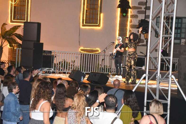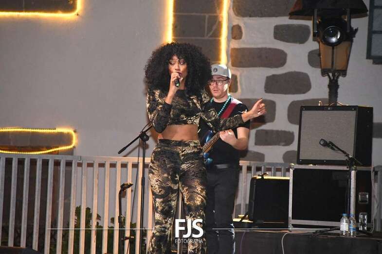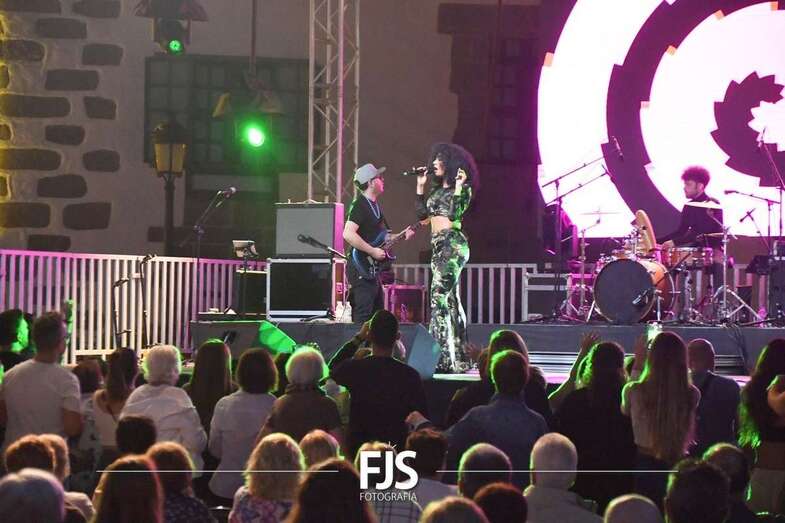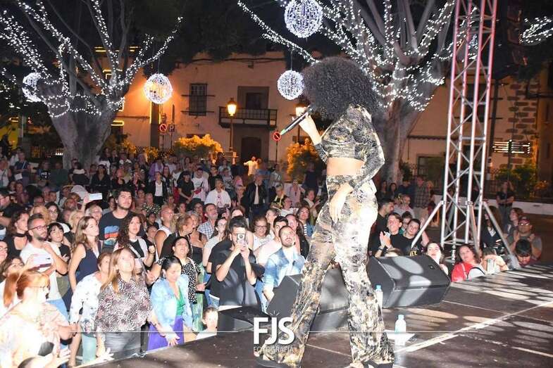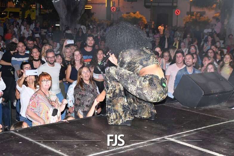 La cantante grancanaria Nia Correia puso a bailar esta noche a San Juan durante el concierto que ofreció en la plaza del conjunto histórico de Telde dentro del ciclo Sunset Festival de recitales y actividades de promoción turística.