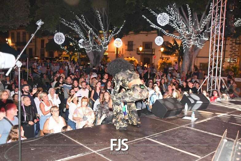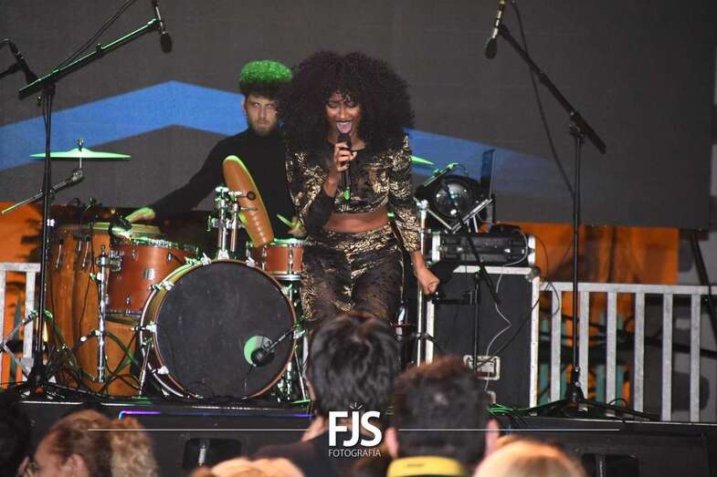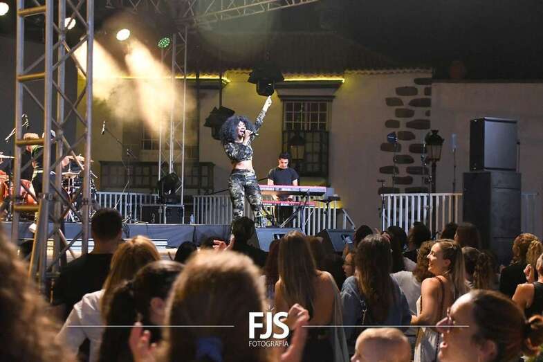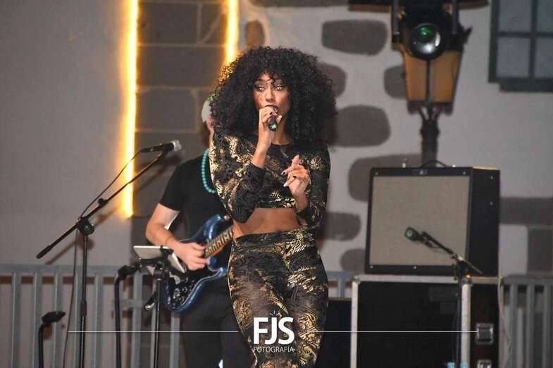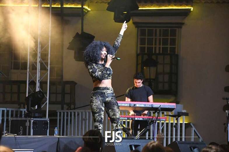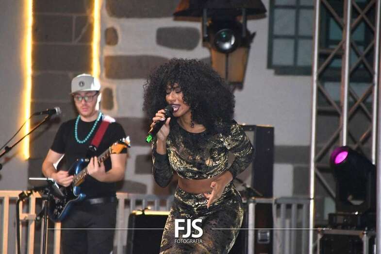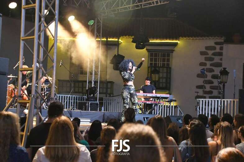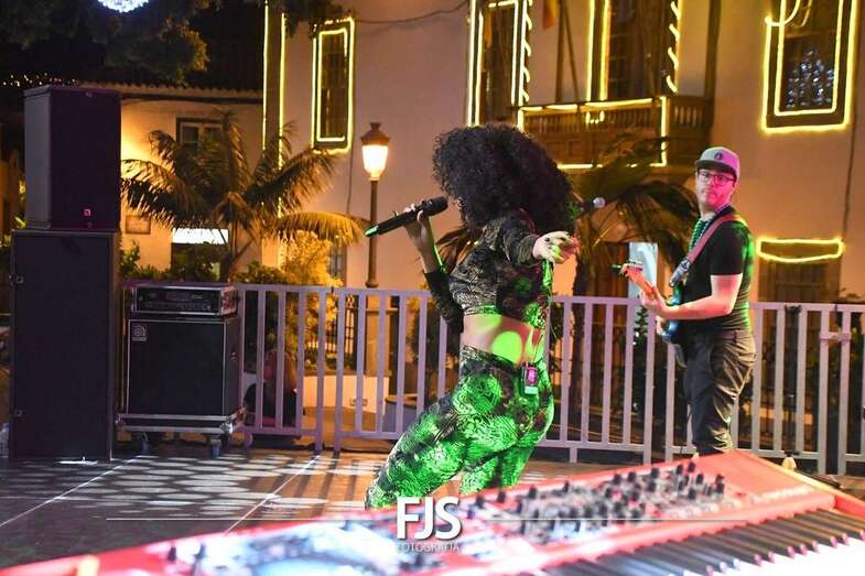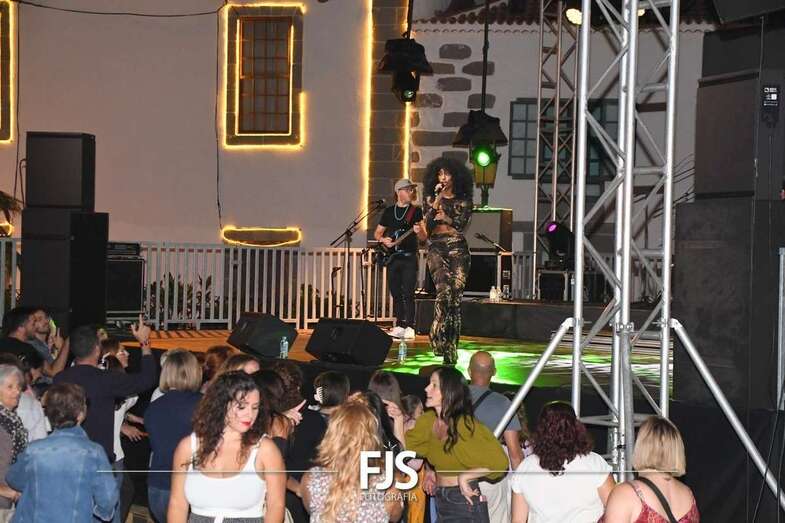 La cantante grancanaria Nia Correia puso a bailar esta noche a San Juan durante el concierto que ofreció en la plaza del conjunto histórico de Telde dentro del ciclo Sunset Festival de recitales y actividades de promoción turística.