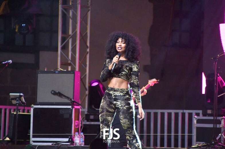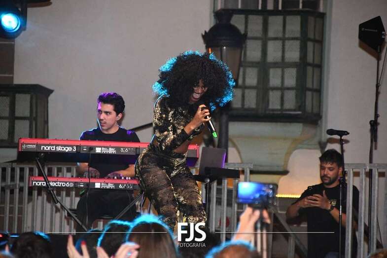 La artista, ganadora de concursos musicales y estrella del momento, hizo bailar a todo el público en la plaza de San Juan con su música, ritmo y energía en un concierto que dio comienzo a las 21.00 horas y congregó a numeroso público .