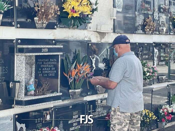 Miles de personas han acudido este martes a los dos cementerios de Telde con motivo de la celebración del Día de Todos los Santos, esta vez sin restricciones ni mascarillas, para recordar a sus seres queridos con la colocación de velas y flores en sus nichos.