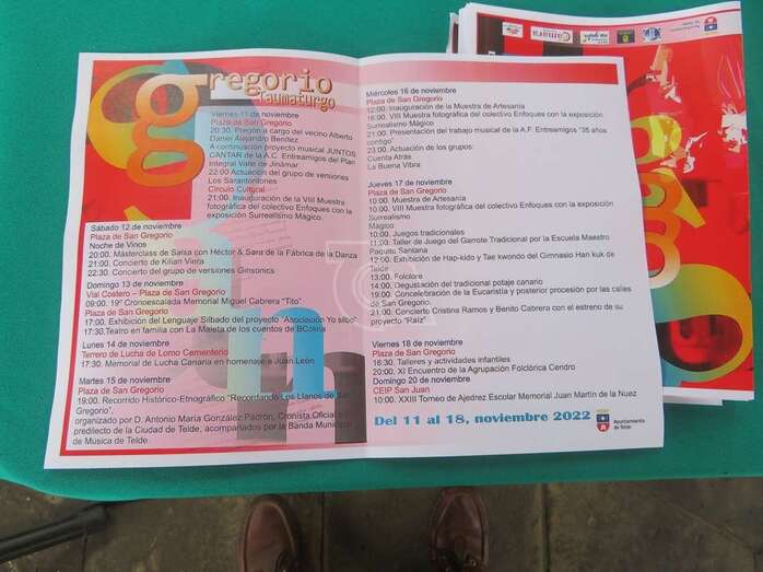 El programa festivo continúa el viernes 18 de noviembre con talleres y actividades infantiles en la plaza de San Gregorio (16.30) y el XI Encuentro de la Agrupación Folclórica Cendro (20.00). Por último, el domingo 20 de noviembre, los actos se cierran con el XXIII Torneo de Ajedrez Escolar Memorial Juan Martín de la Nuez en el CEIP San Juan (10.00 horas).