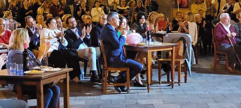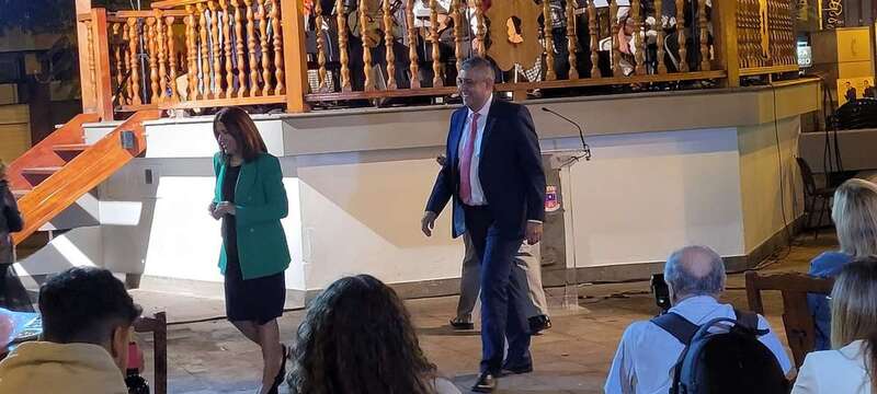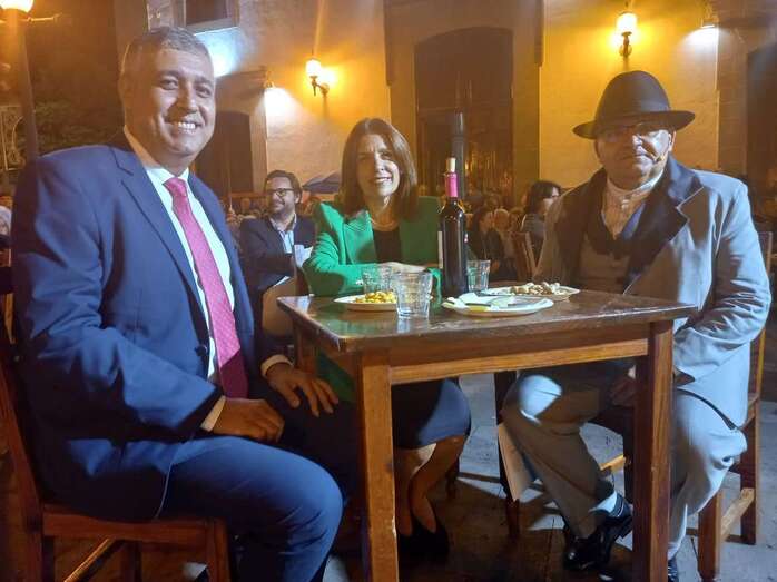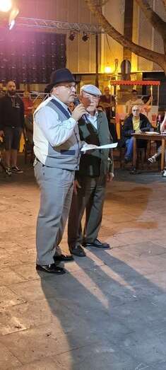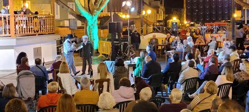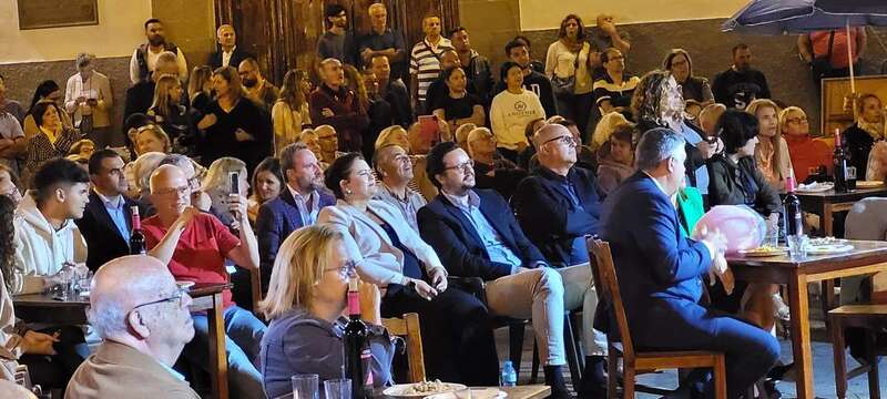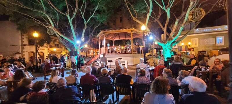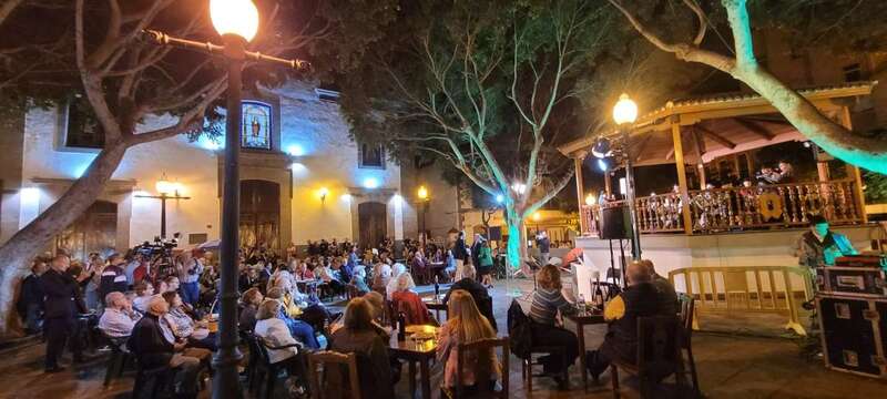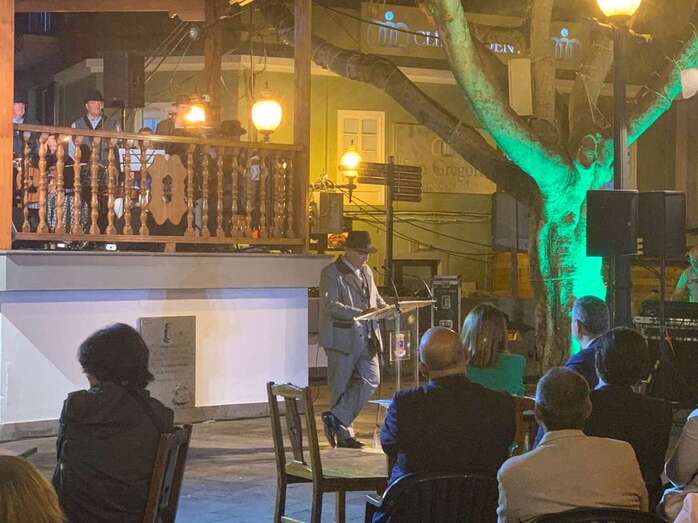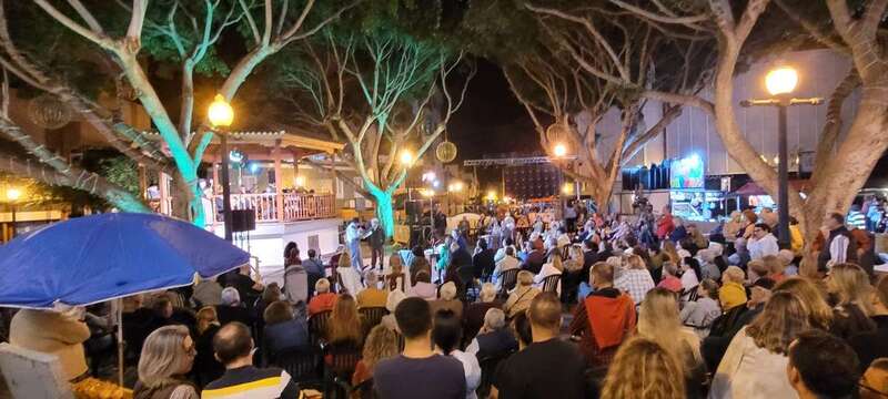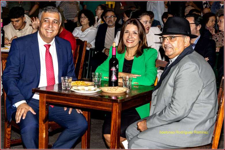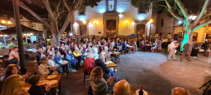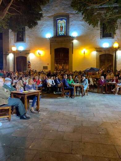 El escenario emuló a un tenderete de la época, con mesas y sillas repartidas por diferentes rincones de la plaza de Los Llanos, Alberto Alejandro Benítez fue recorriendo alternando la lectura del texto con música y bailes en directo ante una nutrida asistencia de público conformado por vecinos, amigos y una amplia representación de autoridades públicas encabezada por la alcaldesa Carmen Hernández e integrada por ediles del Gobierno (Servando González, Celeste López, Agustín Arencibia, Sergio Suárez, Eloy Santana, Álvaro Monzón, entre otros) y de la oposición (Sonsoles Martín y María Eugenia Melián, del PP, Héctor León, del PSOE, y César Santana, de Unidas Podemos). También asistió el senador Sergio Ramos, candidato del PP a la Alcaldía de Telde aún pendiente de su nombramiento oficial.
