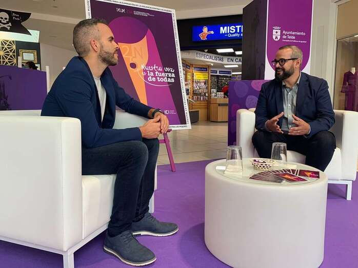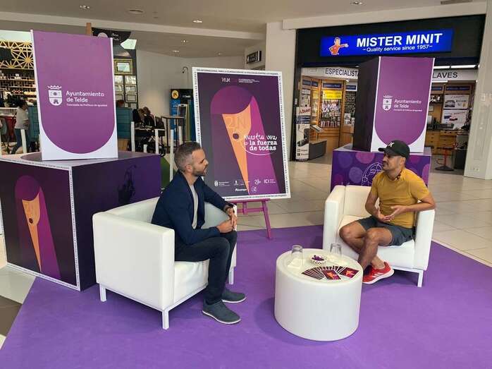 La Concejalía de Políticas de Igualdad, coordinada por el edil Jonay López, llevó a cabo este miércoles en el Centro Comercial Alcampo el set de entrevistas incluido en el programa diseñado para la conmemoración del 25N, Día Internacional para la Erradicación de la Violencia contra las Mujeres, y que este año tiene como lema Nuestra voz es la fuerza de todas.