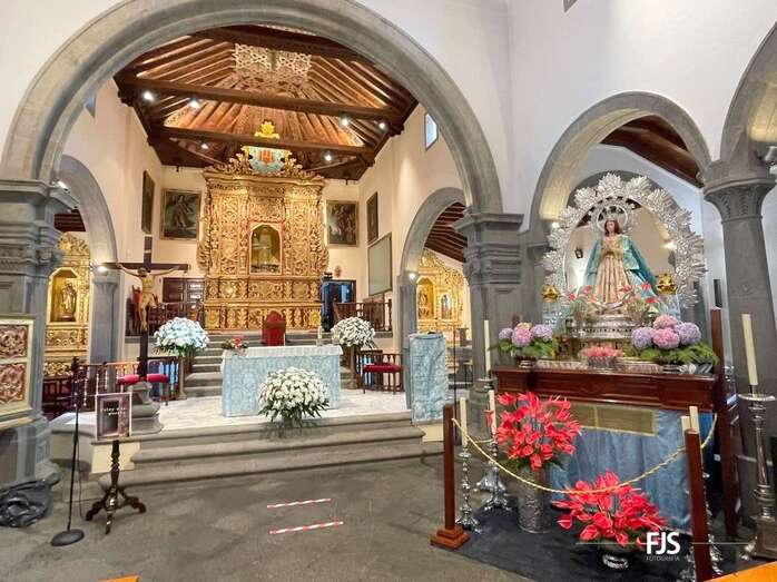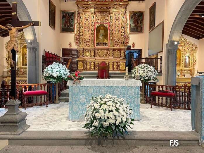 Hay que destacar que este año, el santuario estrena frontal en la mesa de celebraciones del altar mayor confeccionado por Segundo Amador, quien lleva ya consolidado su excelencia de ser el decorador floral oficial de la Inmaculada Concepción.