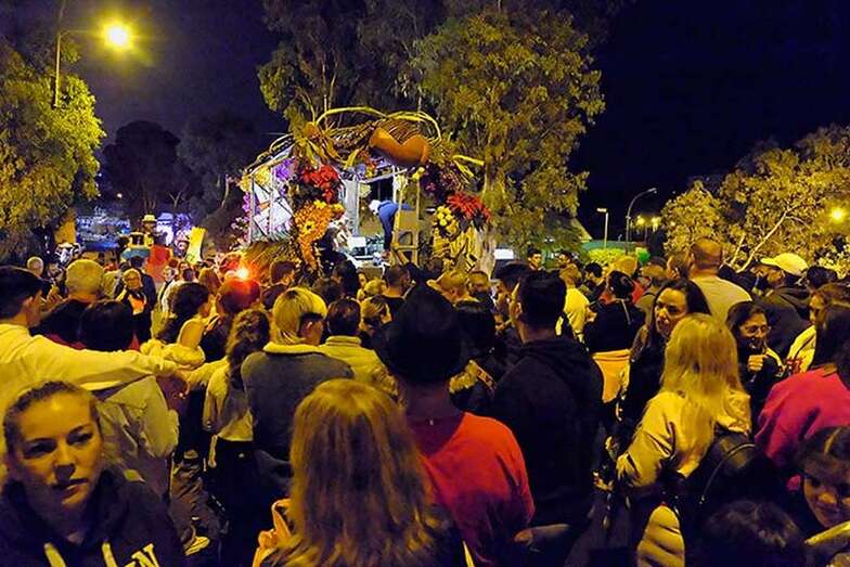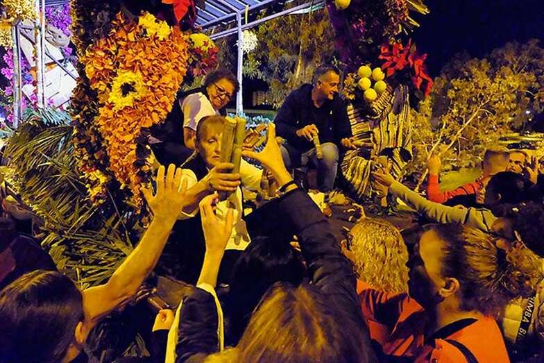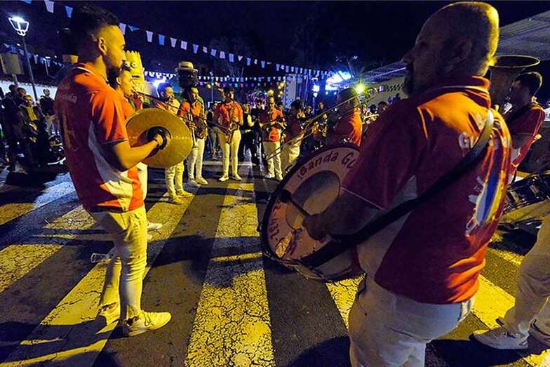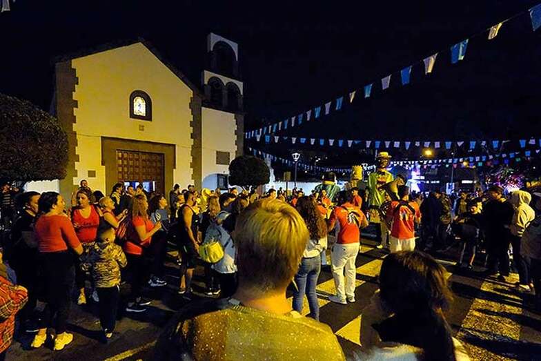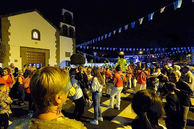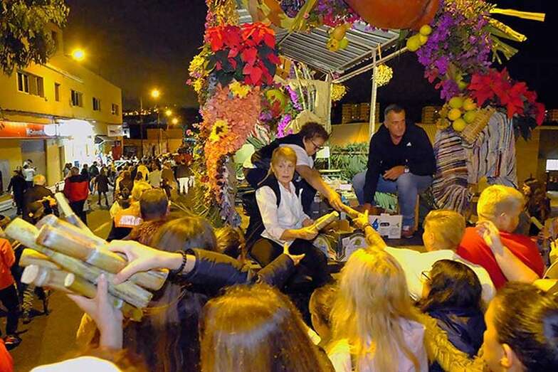 A partir de las 19.30 horas, la algarabía montada por la banda Guiniguada y un grupo de papagüevos puso en marcha al pueblo de Jinámar para festejar esta nueva chupada de la caña dulce repartida desde una carreta engalanada para la ocasión.