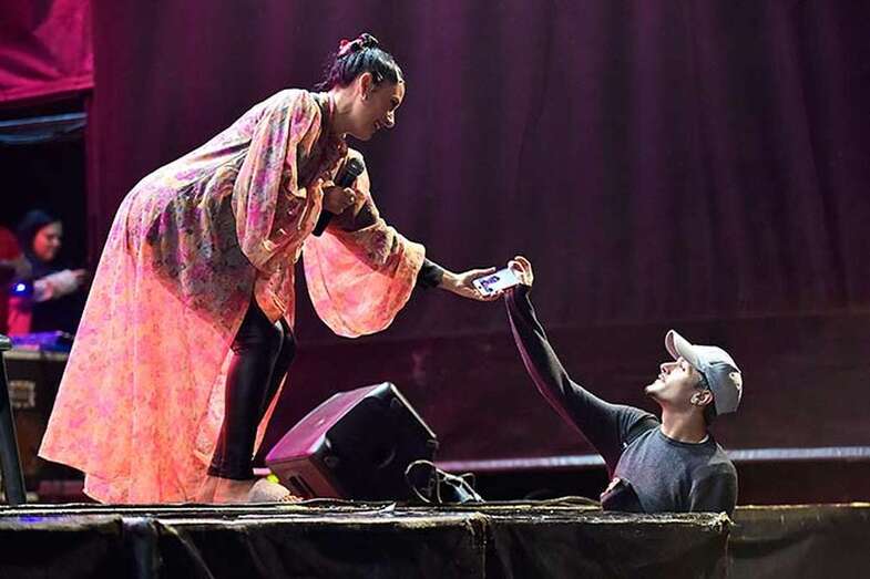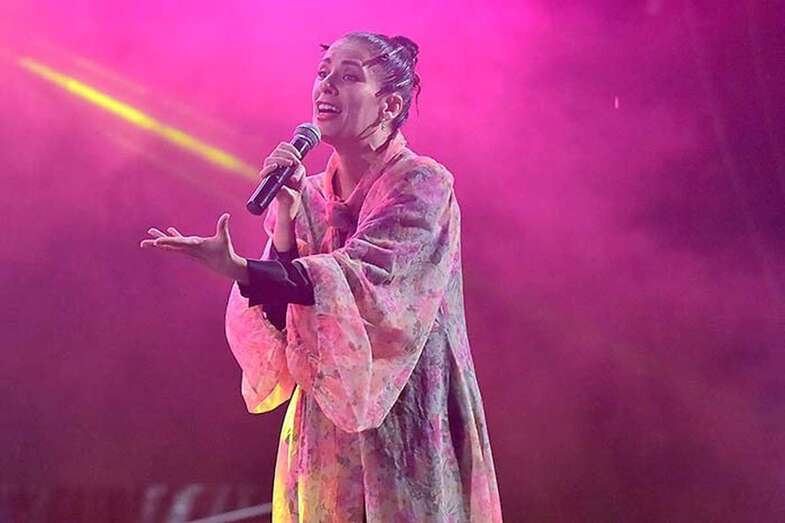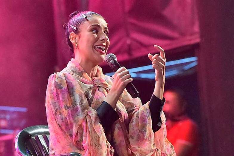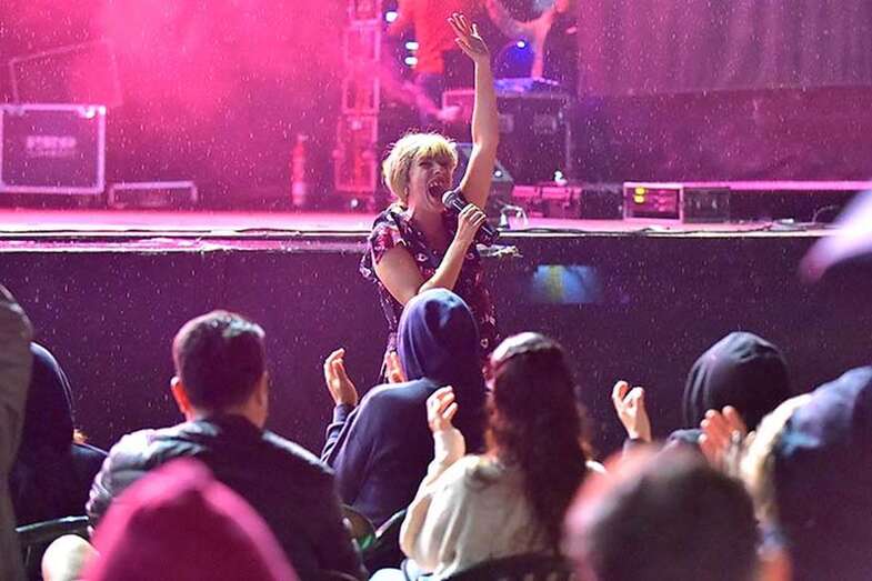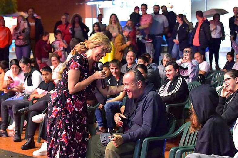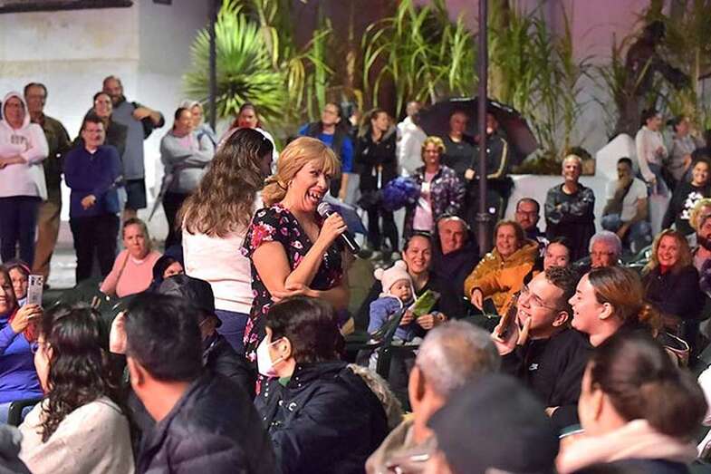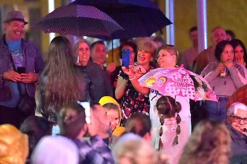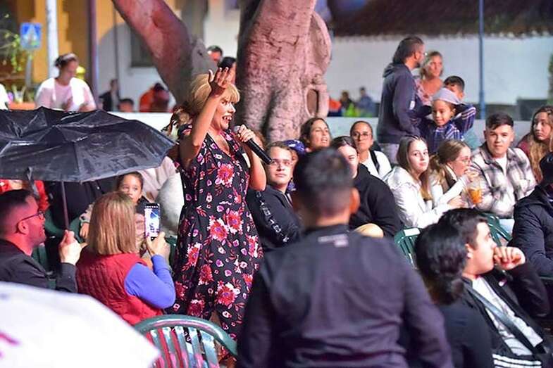 A pesar de la ligera lluvia, la plaza pública contó con una nutrida asistencia de incondicionales de esta artista grancanaria.