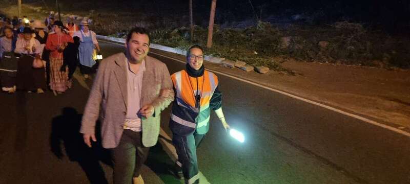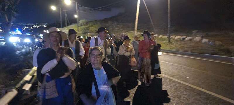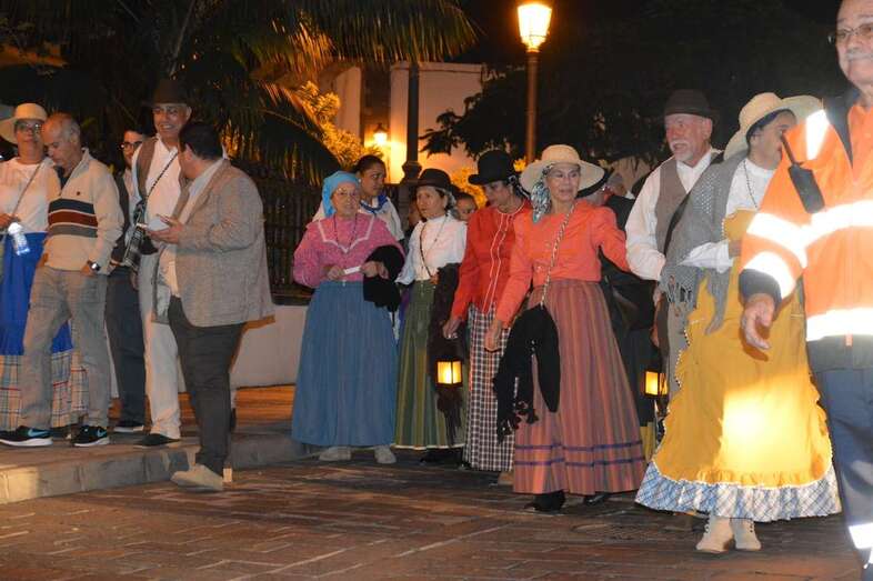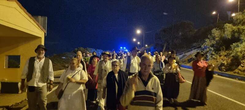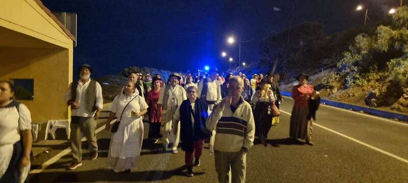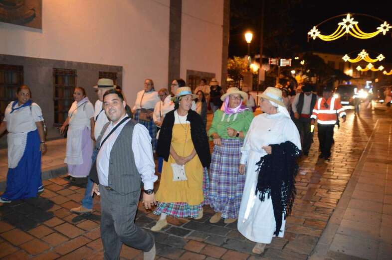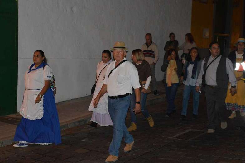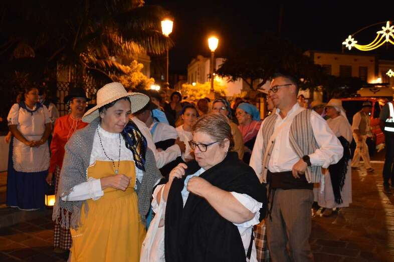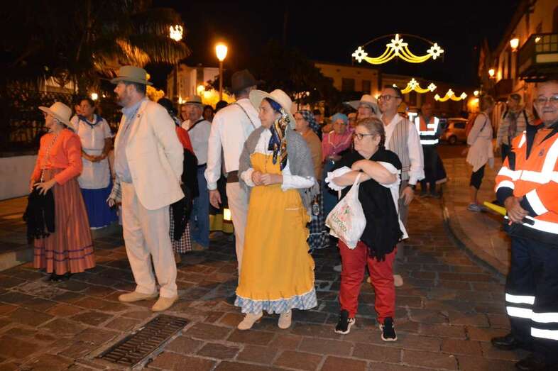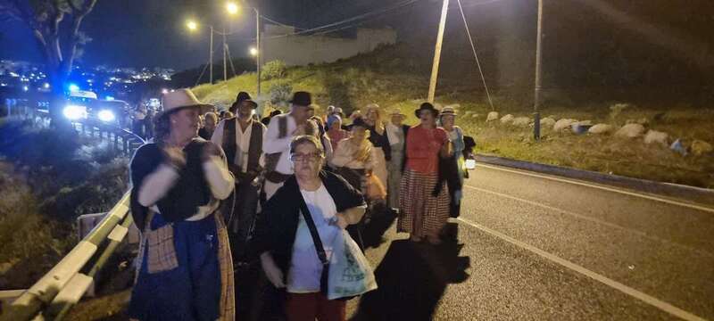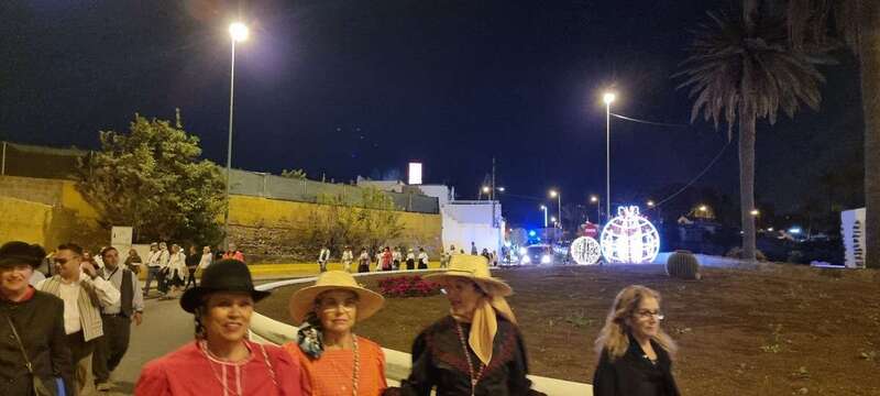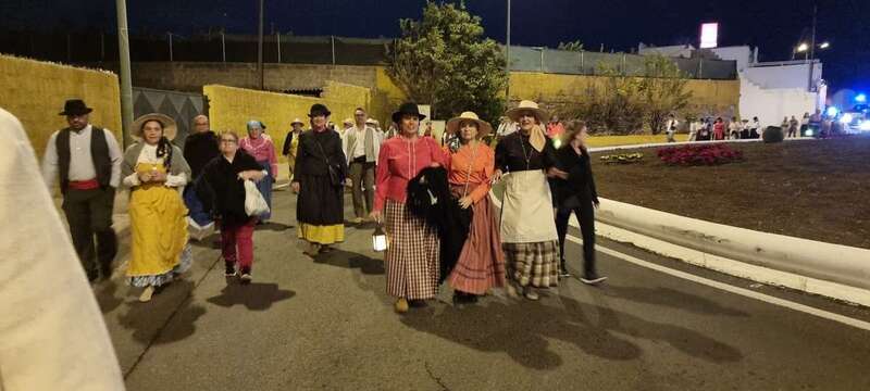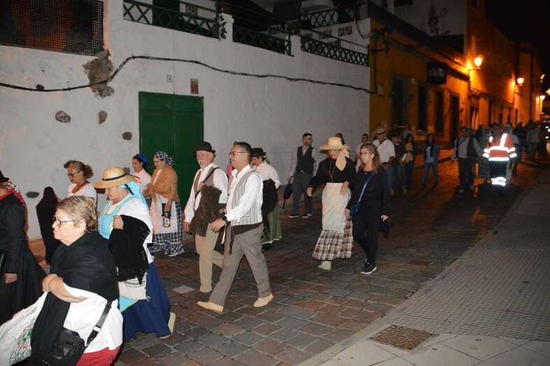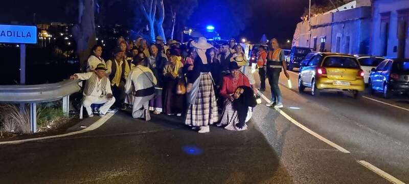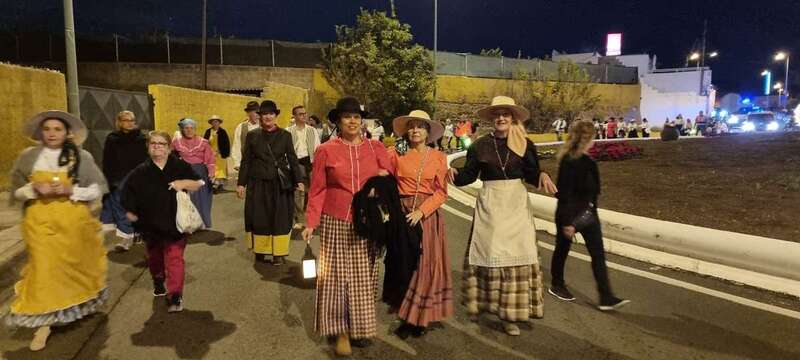 La caminata estaba integrada por personas ataviadas en su mayoría con trajes típicos y portando muchas de ellas faroles. Caras conocidas de la política local como los concejales Diego Ojeda y Servando González, de Nueva Canarias, Soledad Hernández (no adscritos) y el exedil Agustín Déniz, se sumaron a la peregrinación que transitó por la antigua carretera general y llegaría dos horas después al histórico santuario de La Concepción del pueblo de Jinámar, donde tendría lugar la tradicional ofrenda junto a peregrinos procedentes de otros puntos.
