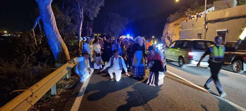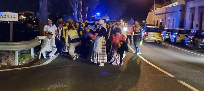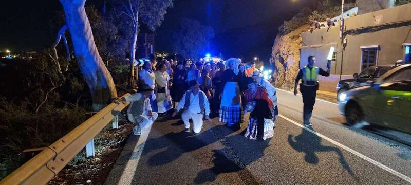 Un dispositivo de seguridad compuesto por voluntarios de la Agrupación local de Protección Civil, patrullas de la Policía Local de Telde y una ambulancia de soporte vital básico dieron cobertura al grupo.