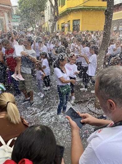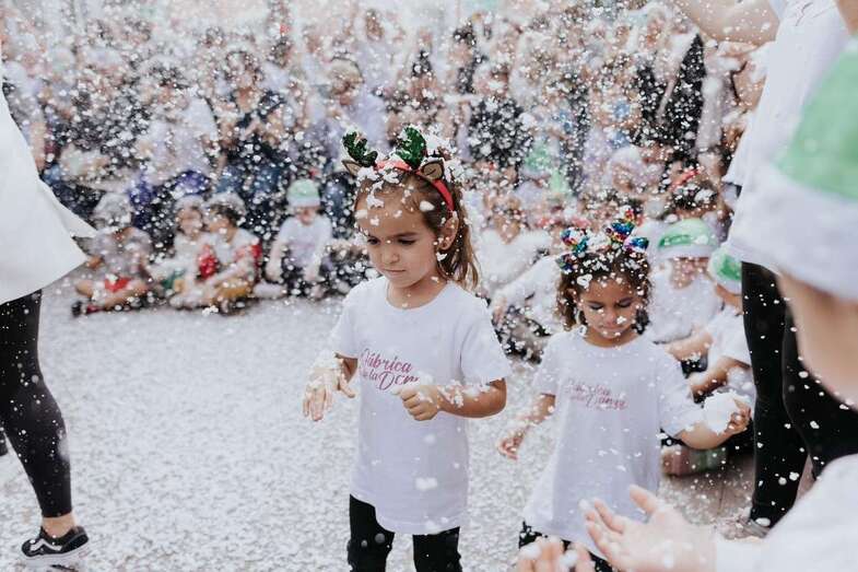 En esta ruta teatralizada, dos duentes iban contando historias y cuentos que motivaban bailes de los niños en diferentes puntos del recorrido y en el último se produjo la explosión de la alegría infantil con la caída de nieve artificial.