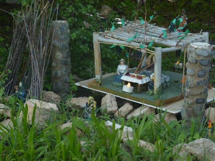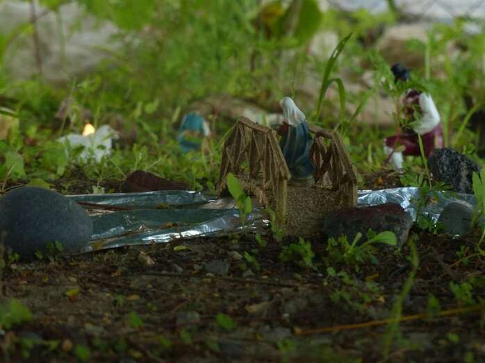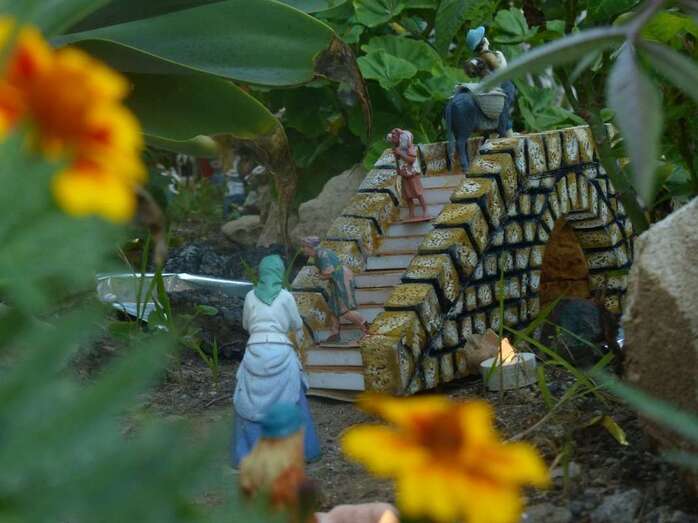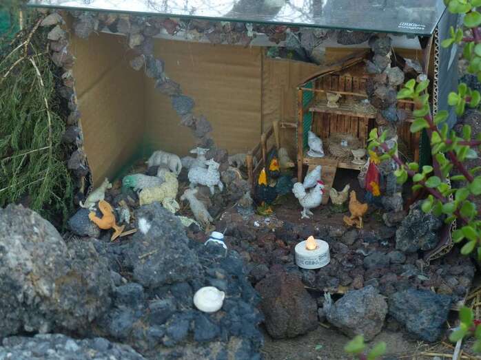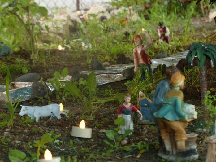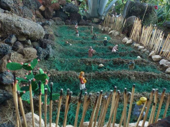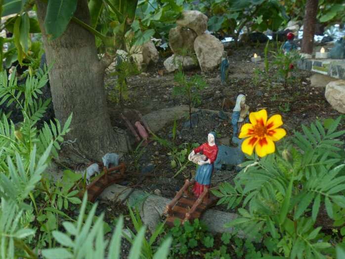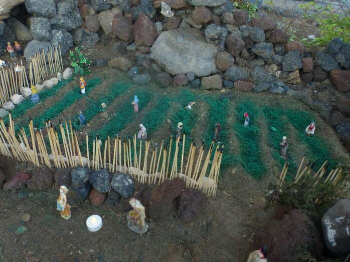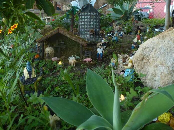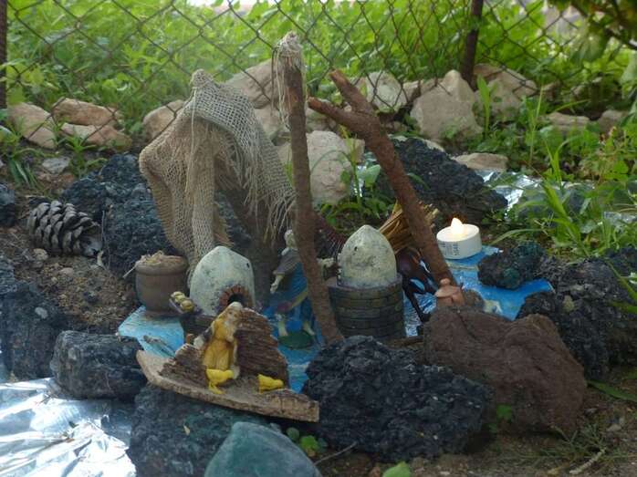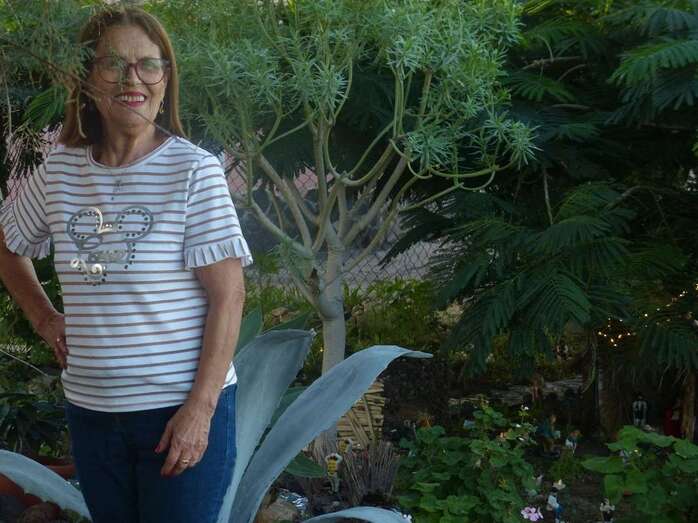 Una Navidad, hace ya nueve años, a esta vecina de Telde se le ocurrió el trasladar la típica escena navideña y montarla bajo un árbol cerca de su casa. A lo largo del año, según disponga de su tiempo, Adolfina fabrica varios de los retablos y elementos que dispondrá más adelante en el montaje.
