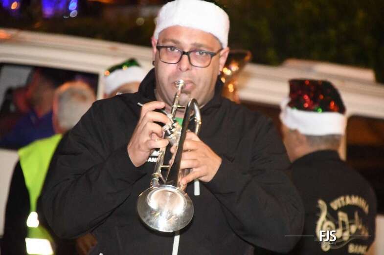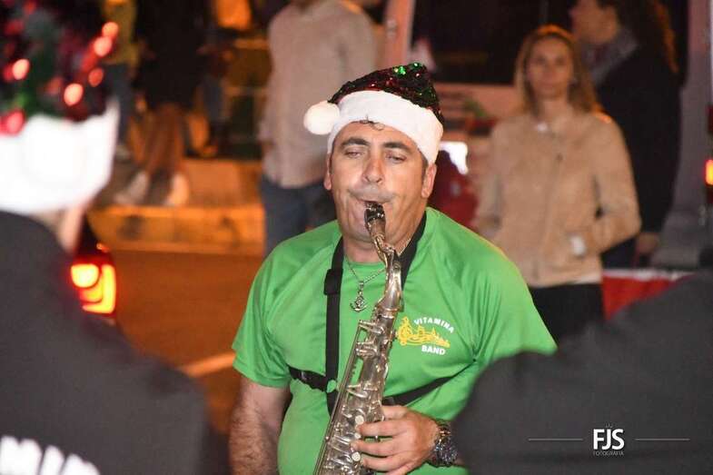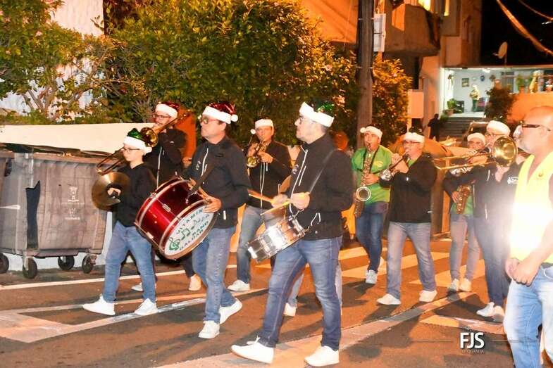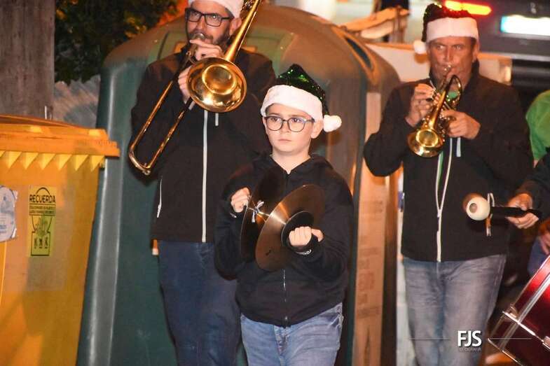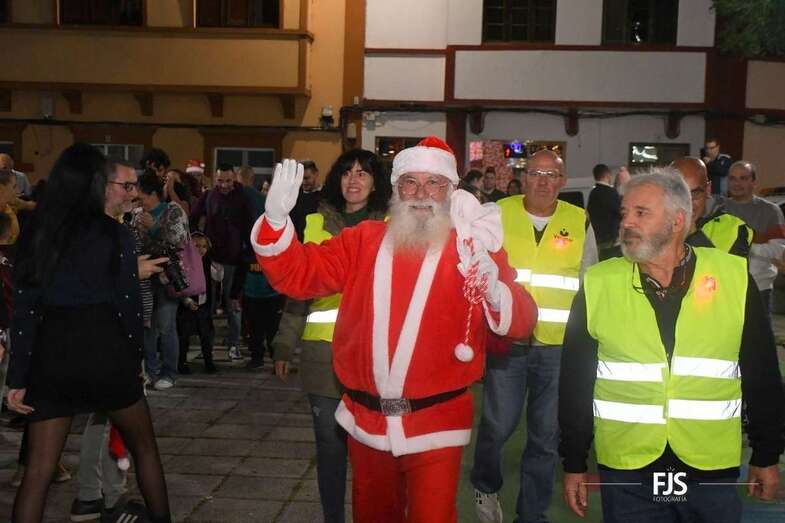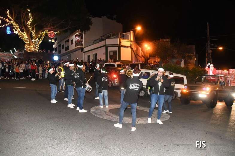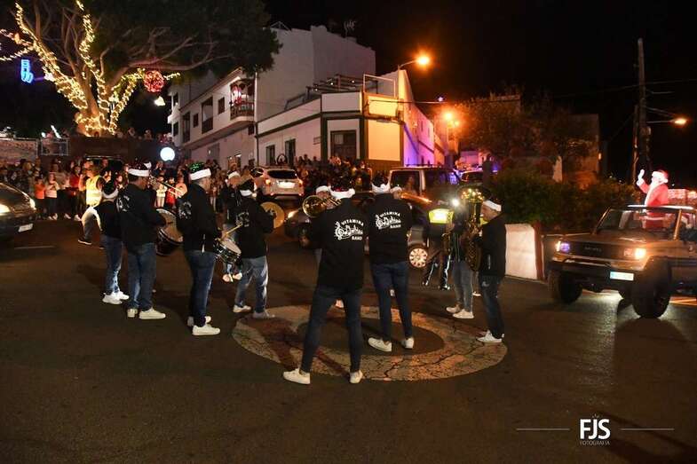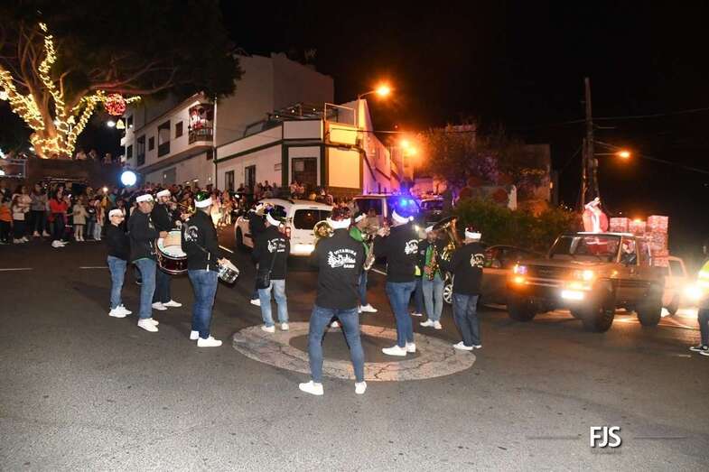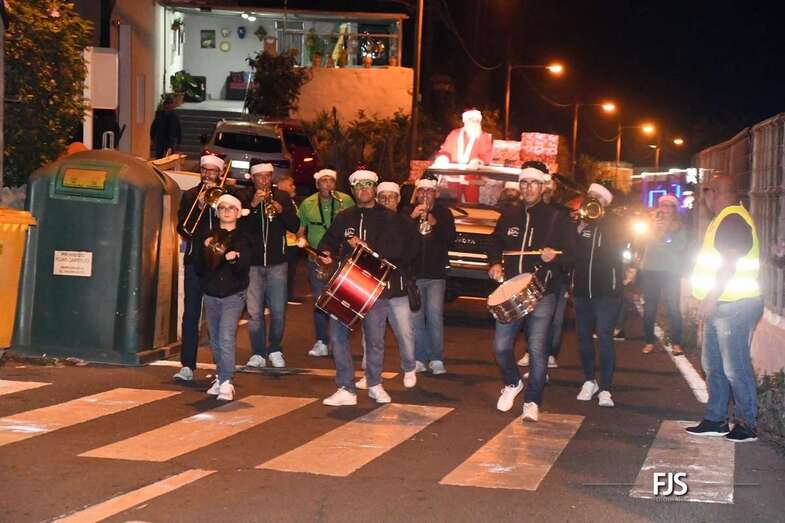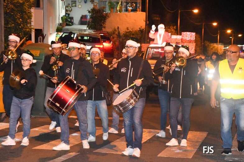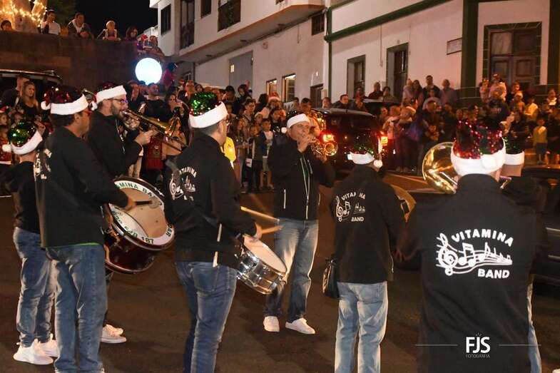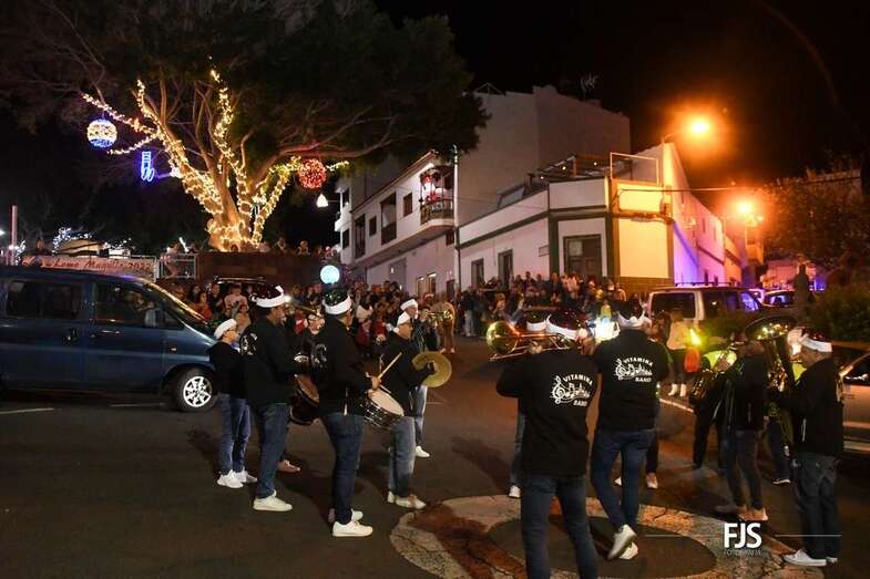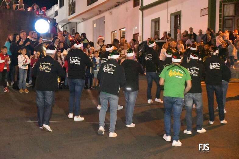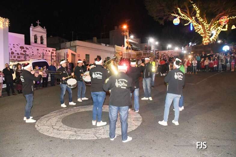 Fue después de las 19.45 horas cuando el gordinflón con su vestimenta roja característica se presentó en Lomo Magullo en un pasacalles animado por Vitamina Band en un acto navideño organizado por el Patronato de Fiestas El Naciente que preside Salvador Santana.