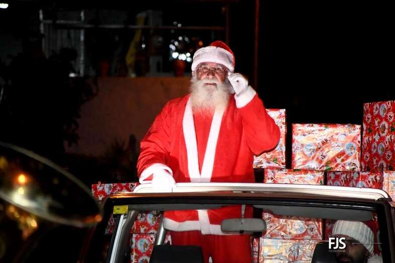 Los niños de Lomo Magullo tuvieron anoche una visita especial, la de Papá Noel, que hizo su entrada en este barrio de medianías de Telde a bordo de un todoterreno para sorpresa de su población infantil.