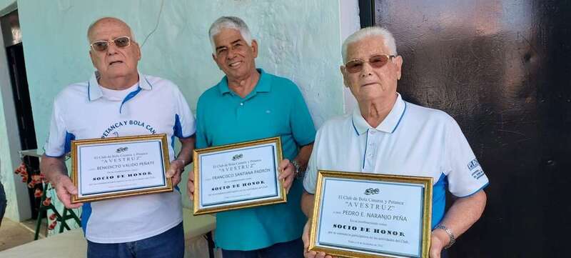 El Club de Bola Canaria y Petanca Avestruz de Telde rindió homenaje recientemente a tres de sus integrantes –Francisco Santana Padrón, Benedicto Valido Peñate y Pedro Naranjo Peña– con su nombramiento como socios de honor de esta entidad que tiene su sede en el parque urbano de San Juan.