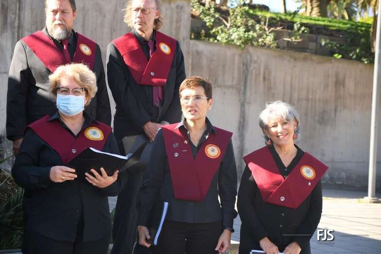En el acto intervino, además, la Schola Cantorum de la ULPGC, bajo la dirección de Stefano Degano, que realizó un último homenaje al catedrático, una persona que estuvo íntimamente ligado al coro al ser uno de los impulsores de su creación en la ULPGC en la etapa de los años 80.