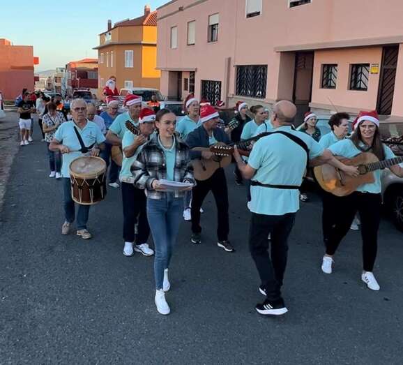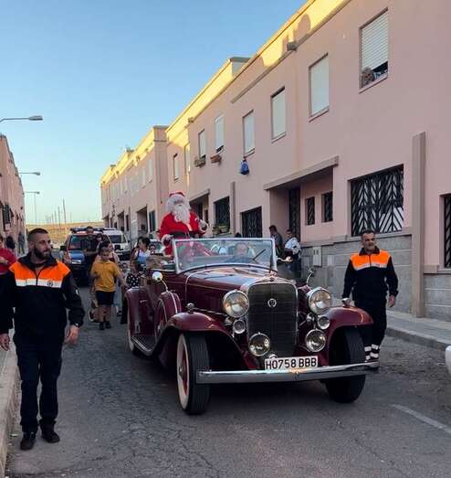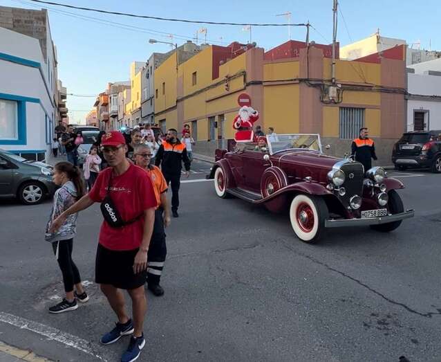 Papá Noel fue agasajado a lo grande este viernes en el barrio teldense de El Goro, al que llegó a bordo de un precioso vehículo antiguo y con el que recorrió este populoso enclave en un amenizado pasacalles.