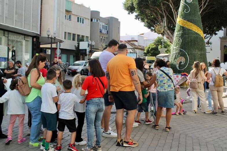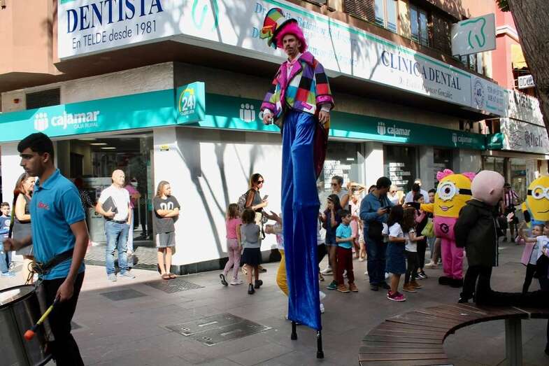 La zona peatonal de Los Llanos, en el casco comercial de Telde, se llenó este lunes por la mañana de música e ilusión gracias a las actividades de dinamización del proyecto Telde en Navidad.