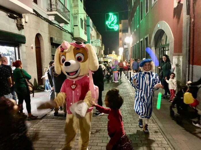 Esta actividad se vio apoyada con actividades de dinamización en las zonas peatonales de Los Llanos de Telde con zancudos, personajes animados, pasacalles nocturno, etcétera, que tuvieron una excelente respuesta por parte de las familias.
