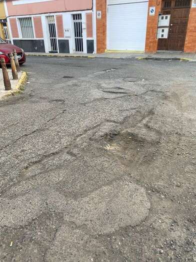 Los vecinos que residen en la calle de Santa Teresa de Jesús, en el sector de El Cascajo de Jinámar, imploran su rebacheo o asfaltado ante el problema que supone el estado del firme de esta vía.
