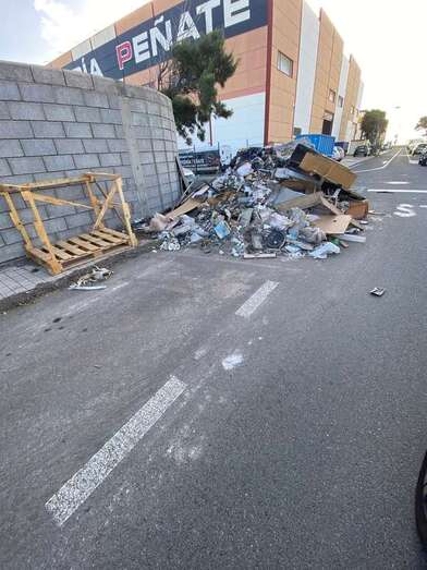 Usuarios de la zona industrial de Salinetas denuncian la mala imagan que presenta esta complejo fabril de Telde por la basura y los escombros que se acumulan en sus calles.