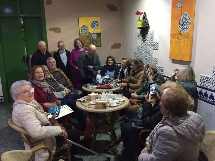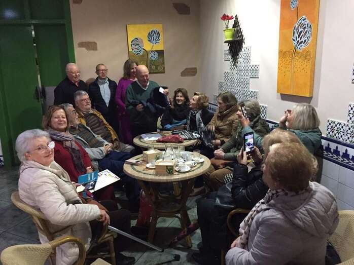 El pasado domingo, el grupo de amigas que solía reunirse para desayunar en La Boheme tras la misa en la Basílica de San Juan quiso rendirle un homenaje a Paco, al que le entregaron una placa de recuerdo de sus muchas horas de palique en el local. También concejales y asesores del Ayuntamiento de Telde le tributaron un reconocimiento con un almuerzo en el restaurante La Culata II de Las Vegas de Valsequillo.