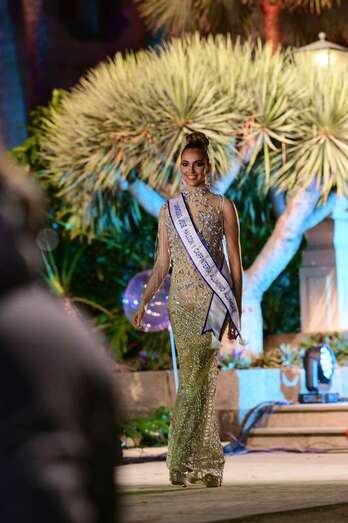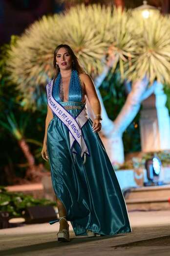 7.- Radio Sintonía Fuerteventura / Aluminios Araya / Padilla Supermercados-Spar presentan a María Santiago Hernández con la fantasía 'Entre las aguas de Cofete', diseñada por Luis Miguel Rodríguez Roger.