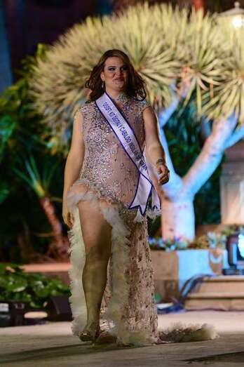 8.- Holidayworld Maspalomas presenta a Gara Morales Suárez con la fantasía 'Va por tí', diseñada por Kevin Rodríguez y Enrique González.