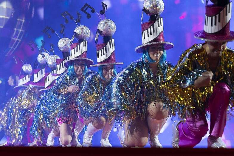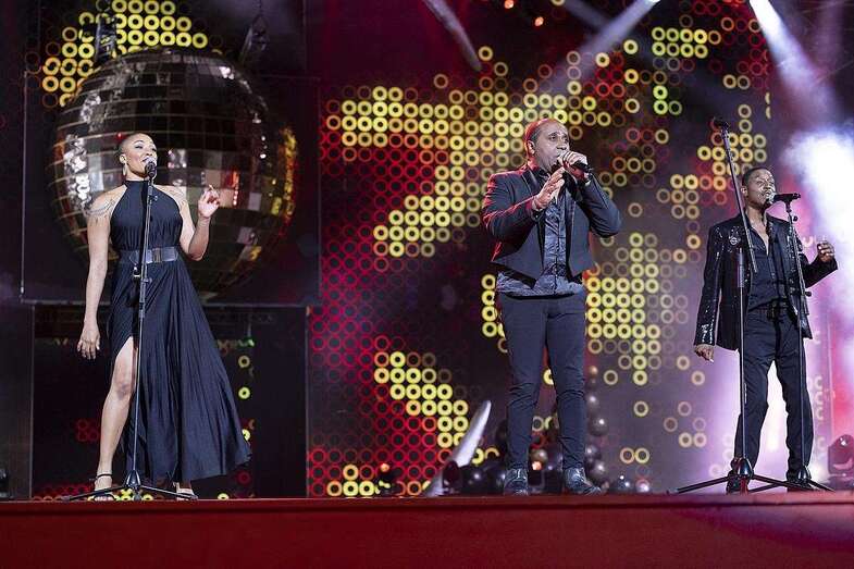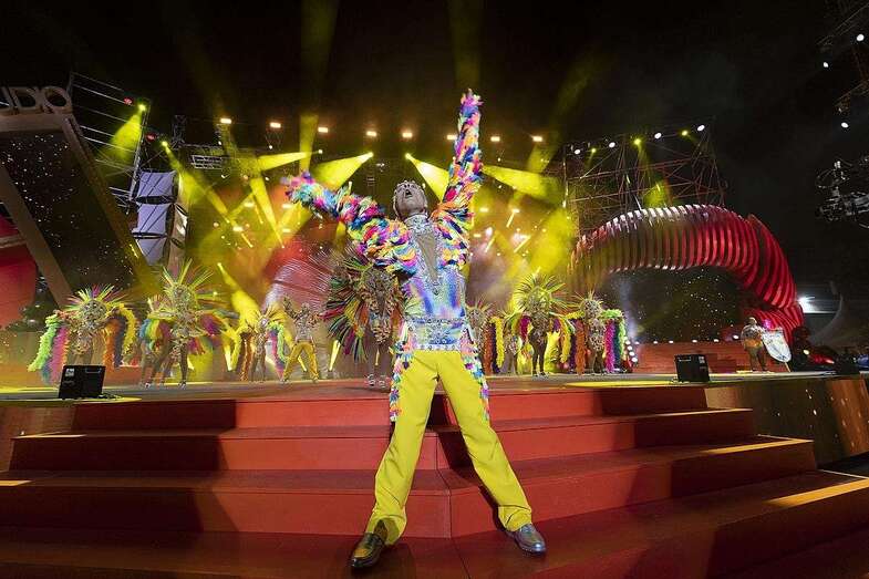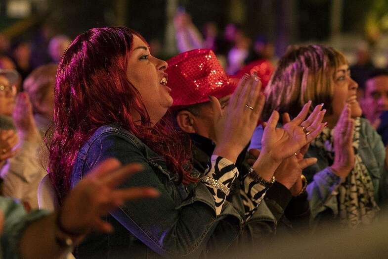 El momento más discotequero de la noche llegó con el grupo mítico caribeño Gibson Brothers, reyes de la pista entre los años 70 y 80, que puso a bailar a un entregado público en una velada mágica que también contó con las actuaciones musicales de la también histórica cantante Lea Zafrani y Gersón Galván, con el espectáculo de Amanecer Rociero, uno de los grupos con más solera y tradición del Carnaval de Las Palmas de Gran canaria y con el humor y la ironía del grupo decano del Carnaval la Afilarmónica Los Nietos de Kika que subieron al escenario con cabra incluida.