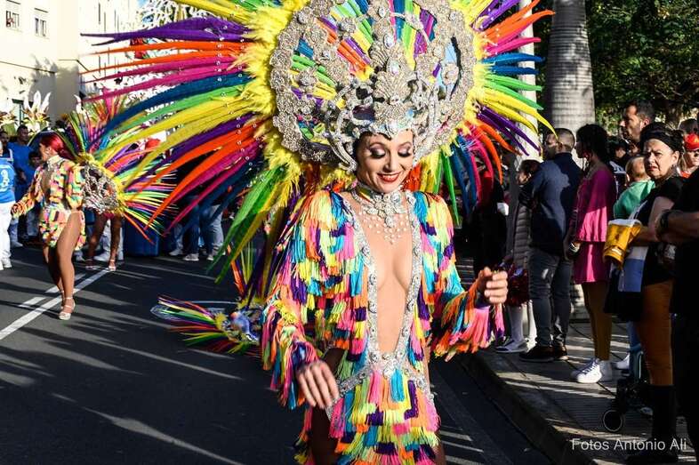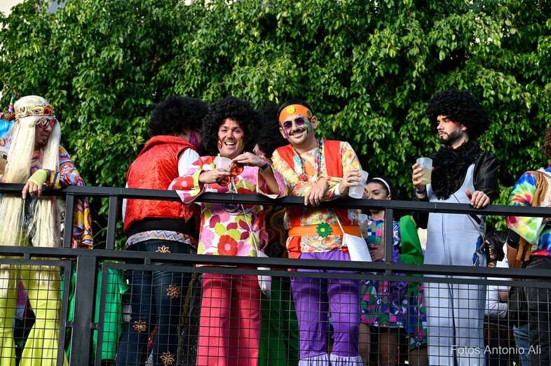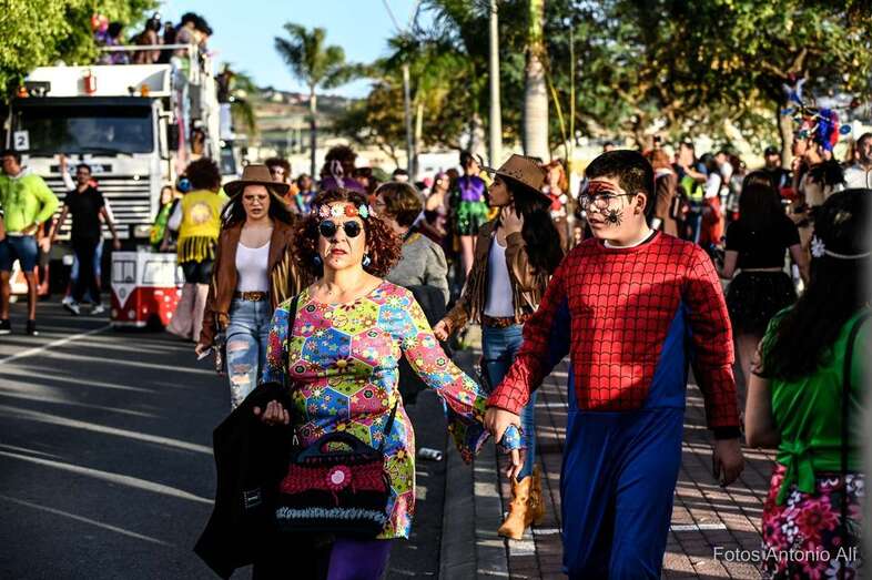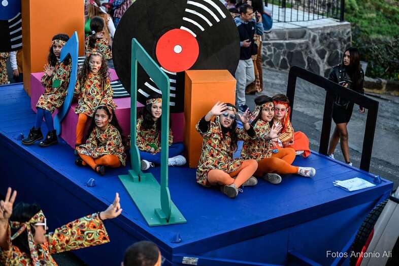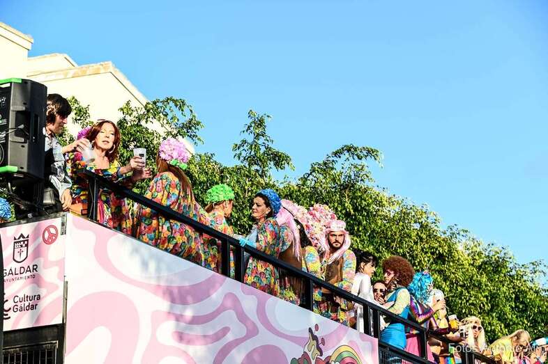 El Carnaval de Gáldar 2023, dedicado a Los Locos Años 60, celebró este sábado, 18 de febrero, la Gran Cabalgata del Carnaval 2023.