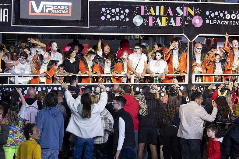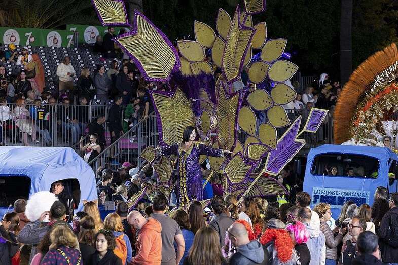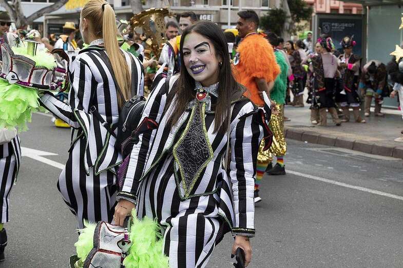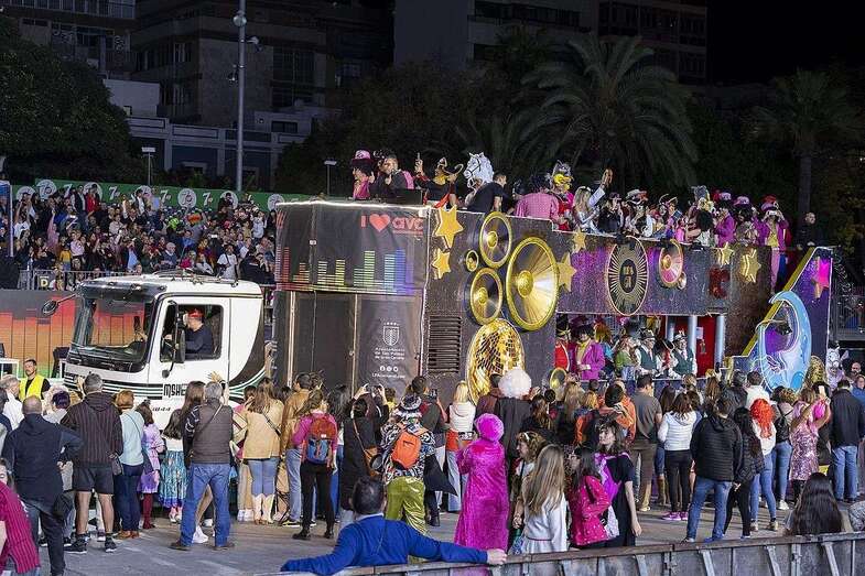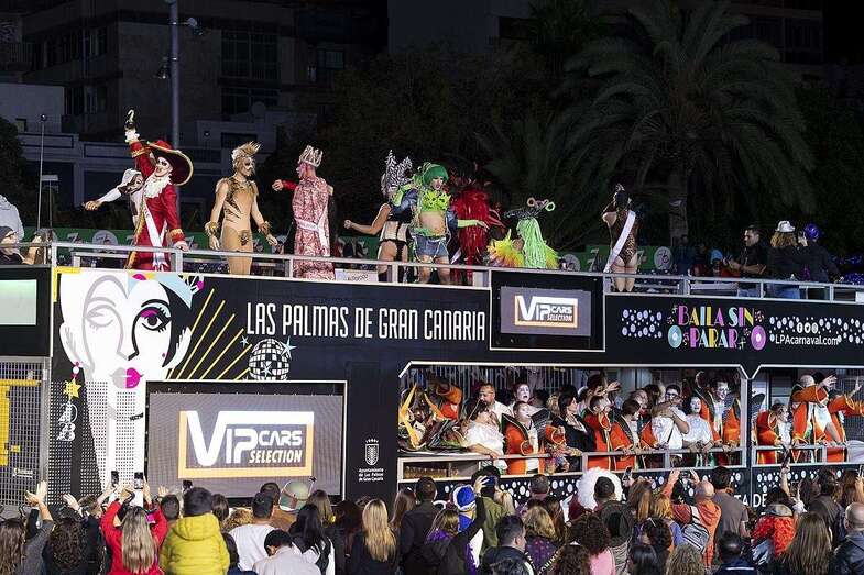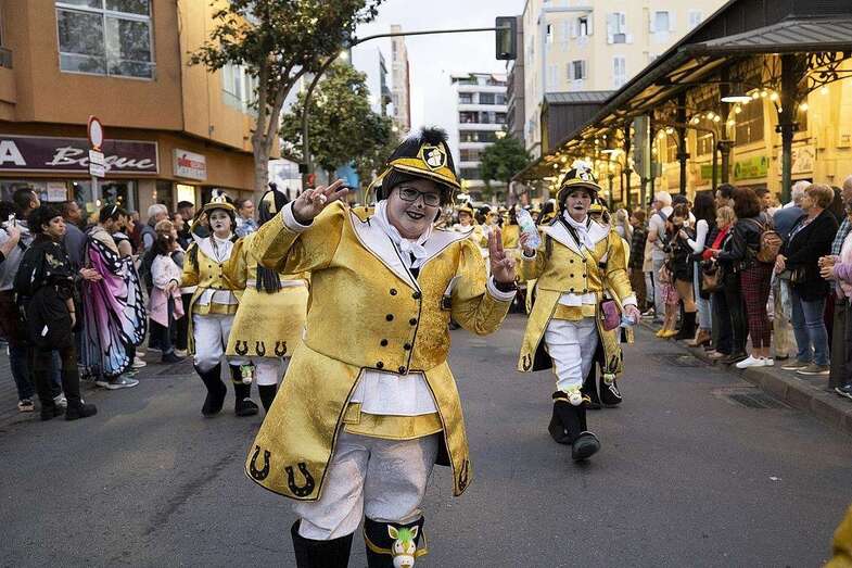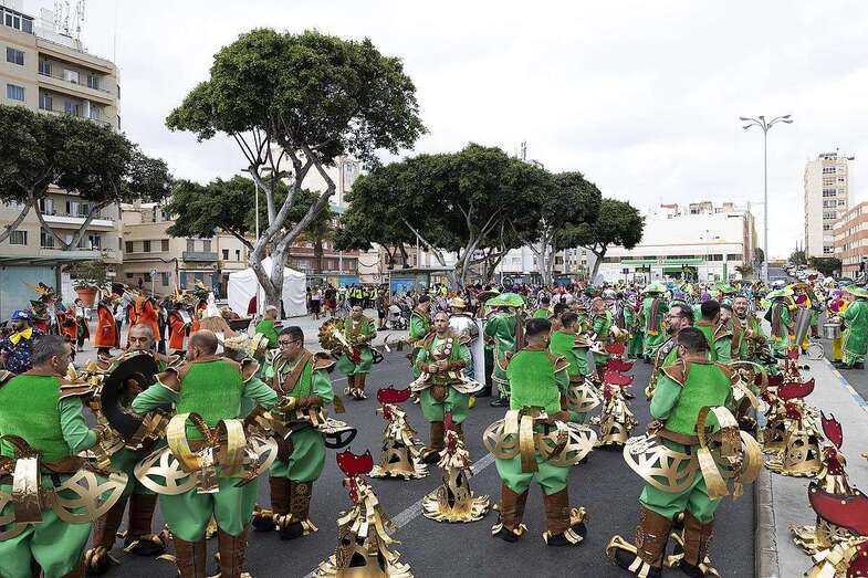 La carroza anunciadora, la adaptada con los drags en su planta superior y la murga Trapasones Star, en la baja, 4 vehículos portadores de reina y damas de honor: Lola Ortiz y las damas Sara Morales, Coral Gutiérrez, María Santiago y Paula Santana; otros cuatro con la Gran Dama Manuela Teno y su corte: Loly Arbelo, Marga Espino, Teresa Santana y Francisca Guardia; así como los grupos de disfraces Danza Las Palmas, Uniks, Chiara’s Girl (primer, segundo y tercer premio), además de Amanecer Rociero, Los cachorros del Carnaval o Janet Dorta, y la Banda Guiniguada, se unieron a un desfile que volvió a reunir en la calle a un buen número de amantes de la fiesta y turistas curiosos y ávidos de llevarse un recuerdo carnavalero grabado en sus dispositivos móviles.