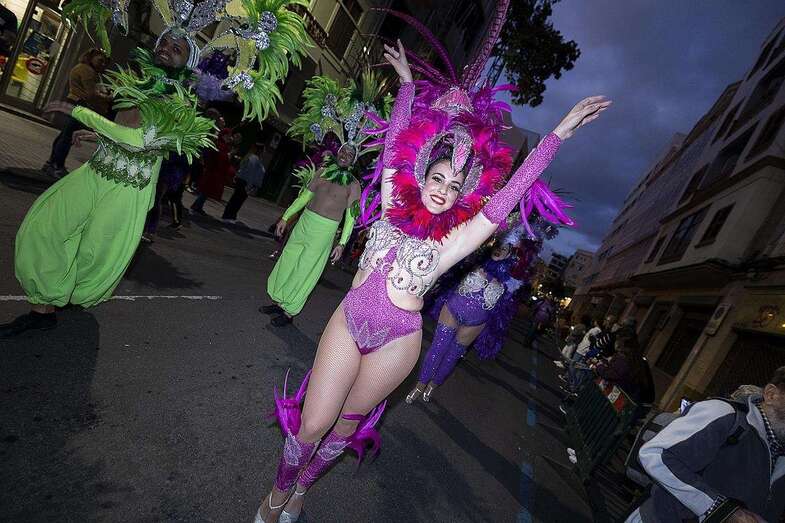 A las 18:00 horas, arrancaba el pasacalles que abría La Banda de Agaete y los personajes del Carnaval, protagonistas que, a ritmo de pachanga y con la simpatía y el descaro por bandera, llegaron a la meta a las 20:00 horas. Poco después, 45 minutos, hacía lo propio el final de la comitiva.