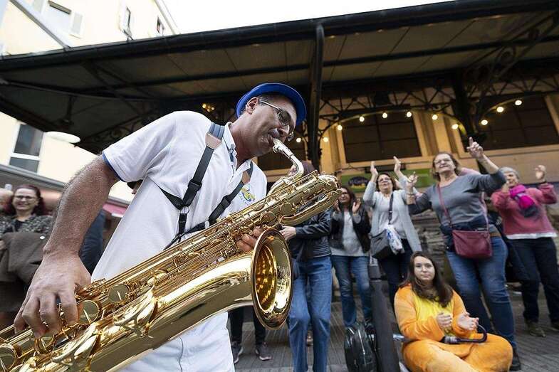 El rato dio para bailar, corear y gritar piropos, pero también para compartir escenario con dos cumpleañeras que bailaron a su lado como regalo de aniversario.