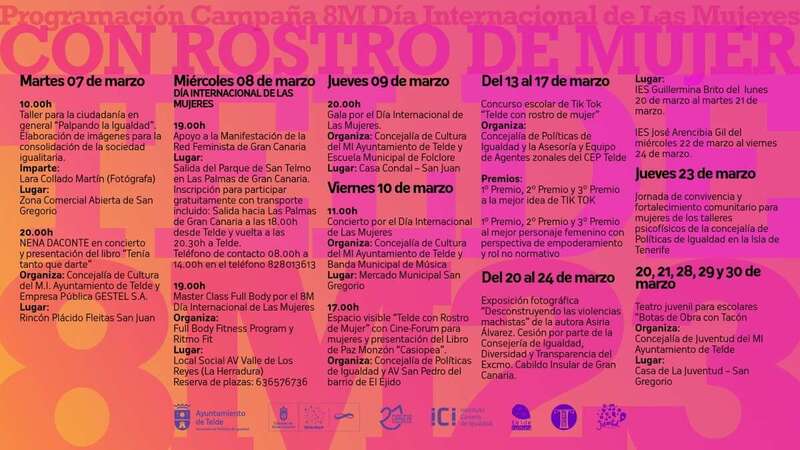 Como novedad, este año el conjunto de actividades incluye un concurso escolar de Tik Tok en la que participa también la Asesoría y Equipo de Agente zonales del CEP Telde. Tendrá lugar del 13 al 17 de marzo y con él se buscan ideas de empoderamiento femenino y la perspectiva de la mujer desde un rol no normativo.