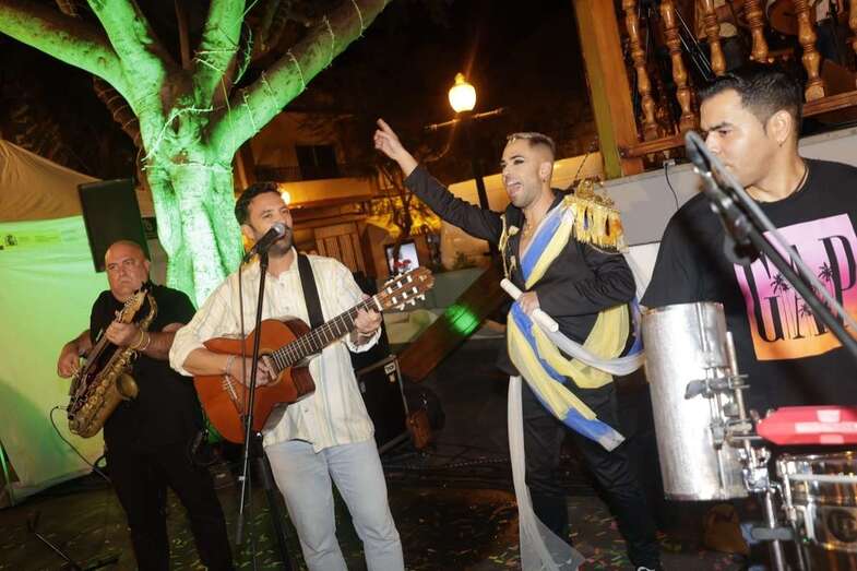 El pregonero, acompañado por el grupo Kilombo que pusó el toque musical, animó al público asistente que terminó el acto en pie bailando y aplaudiendo.