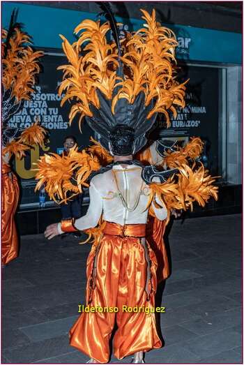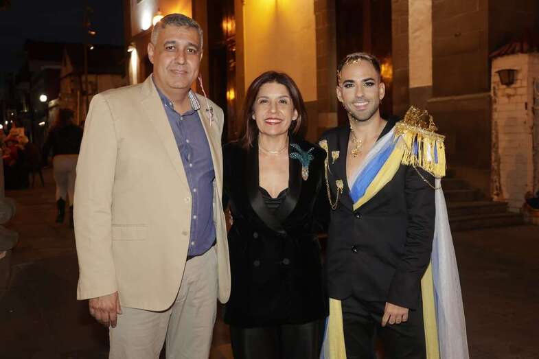 Con un diseño de Pedro Juan González con guiños a Telde en una hombrera muy rococó: el Neptuno de Melenara, la basílica de San Juan y los Siete Puentes en relieve dorado que contrastaban con el negro del traje y una capa con los colores de la bandera canaria, el pregonero compartió algunos detalles de su infancia y adolescencia, y sus inicios en un carnaval que, confesó, siempre vivido con mucha emoción. "Recuerdo esos días en el Poeta y en el Arnao en los que pasábamos jornadas enteras discutiendo a grito pelao y componiendo canciones para las murgas, que nos salían de lujo. No solo eso, viví el Carnaval desde bien pequeño con mucha emoción y recuerdo asistir pronto a cada gala con mi madre, mi tía Loli y mis primos para coger sitio cuando se hacían en la Plaza de San Juan y apenas cabían los grandes trajes de las reinas y finalmente celebrarlo desde entonces en el Auditorio del Parque de San Juan, lugar que es todo un lujo para reencontrarnos y ser partícipes del arte teldense y canario en general".