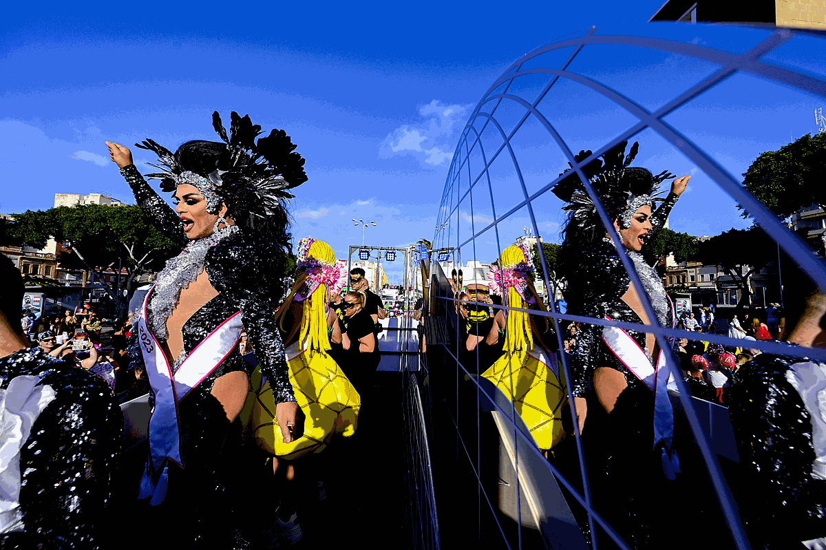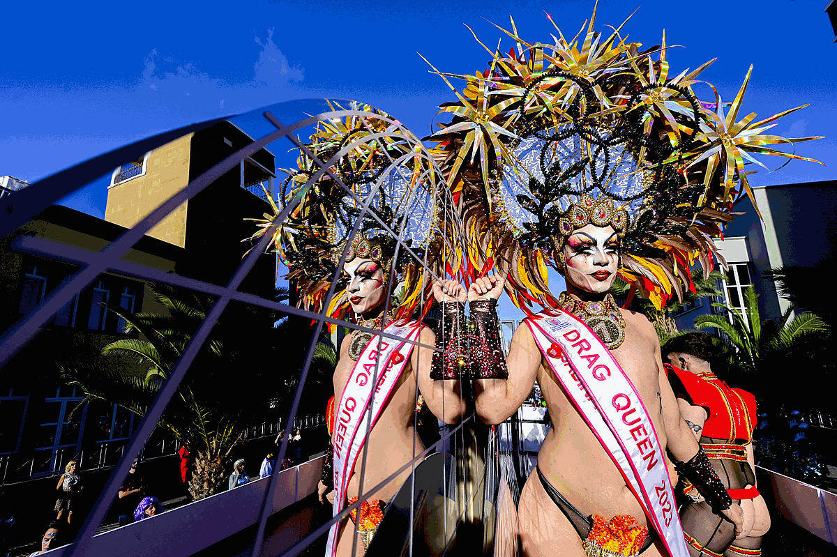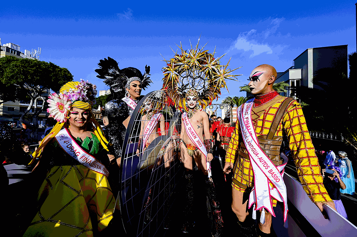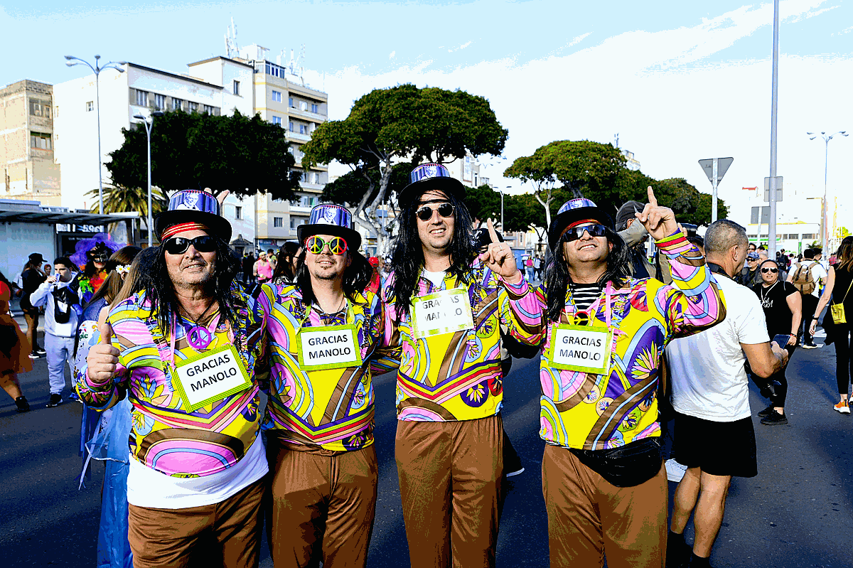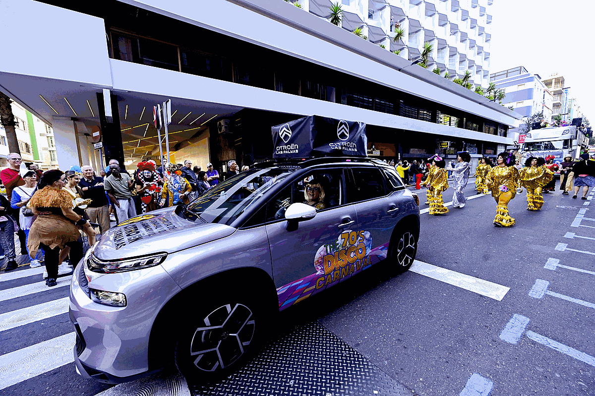 La fiesta carnavalera más multitudinaria partió desde la plaza Manuel Becerra con un total de 105 carrozas que iniciaron su recorrido precedidas de una cabecera festiva encabezada por la Afilarmónica de Los Nietos de Kika, el grupo de disfraces Amanecer Rociero y los personajes del Carnaval que arroparon a la corte carnavalera; la reina Infantil, Aaliyah Méndez, la reina adulta, Lola Ortiz, la gran dama, Manuela Teno y a la carroza que transportó al Drag Queen ganador de l2023, Shíky, alter ego de David Batista, y a los cuatro finalistas Équinox, Ácrux, Ármek e Yshia Taisma que se coronaron en junto a él en el 25 aniversario de la gala. Una animada y lucida comitiva que alcanzó la meta a las 20:30 horas.