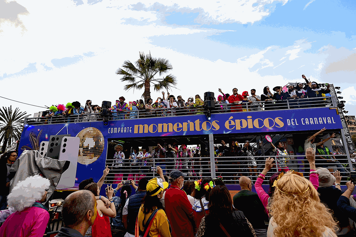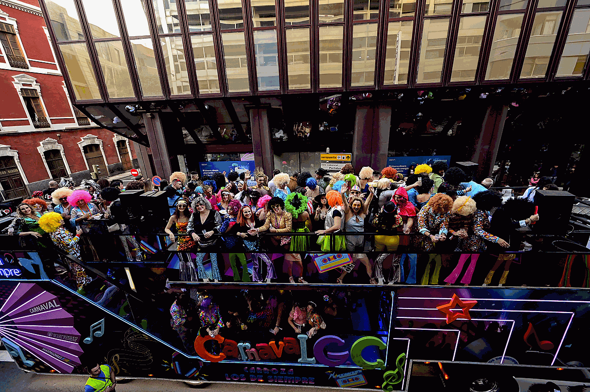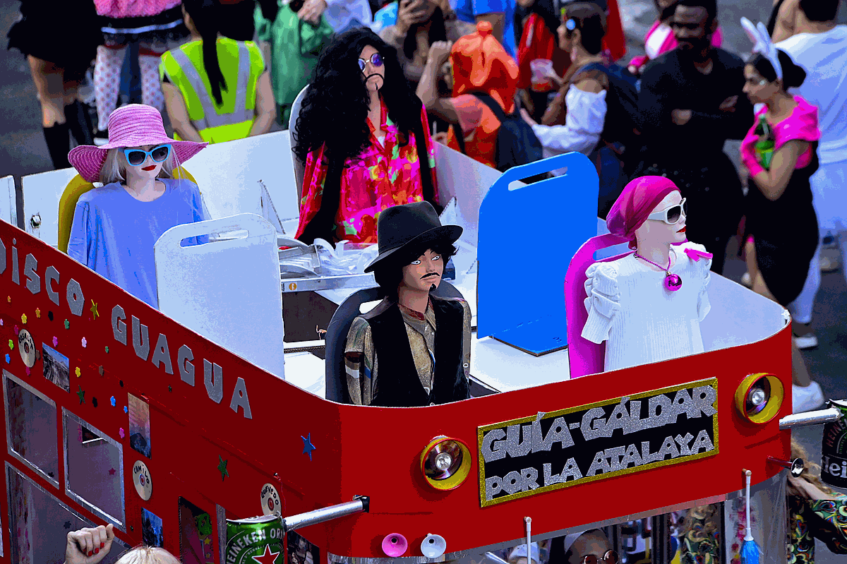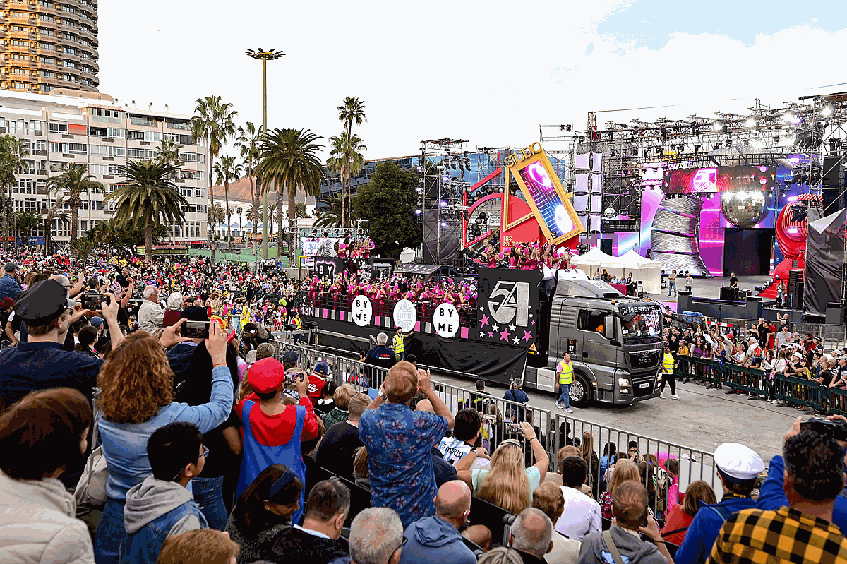 Todos ellos, el trono de la fiesta del Carnaval de Las Palmas de Gran Canaria, dieron impulso al desfile ante una permanente ovación del numeroso público que acompañó a la Cabalgata durante todo su recorrido. Una cabalgata que se transformó, a su paso, en una verdadera discoteca con ruedas.