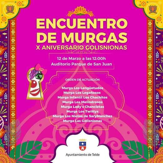Además, a las 12.00 horas, se realizará un encuentro de murgas para celebrar el décimo aniversario de Las Golisnionas, en el que además de ellas actuarán Los Lengüetudos, Los Legañosos, Los Melindrosos, Lady's Chancletas, Los Twittys y Los Nietos de SaryMánchez, además de la murga infantil Los Chachitos.