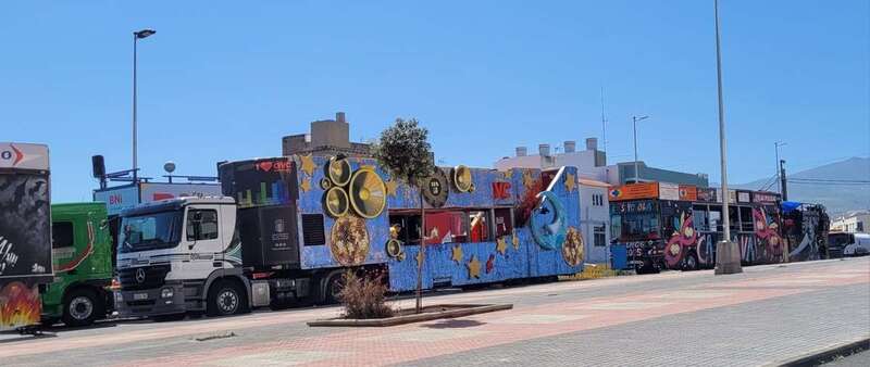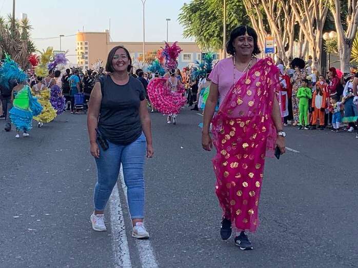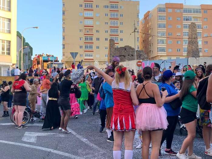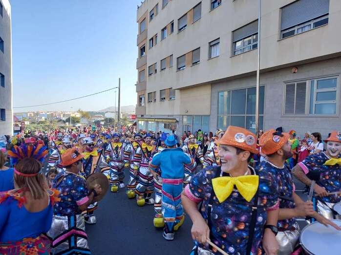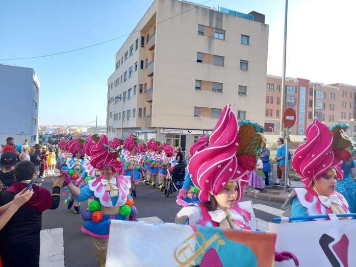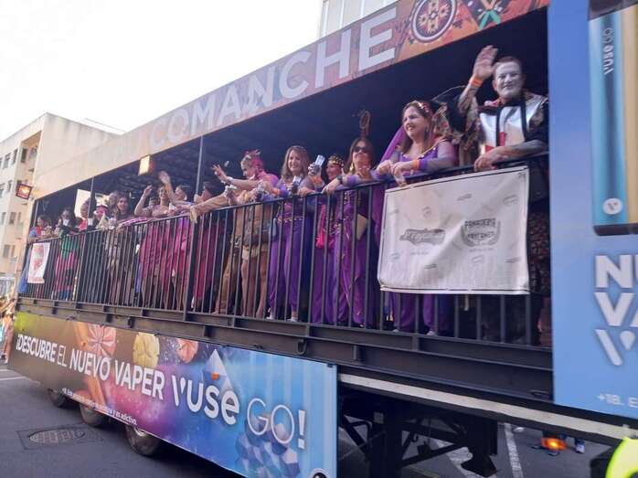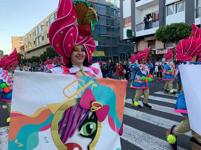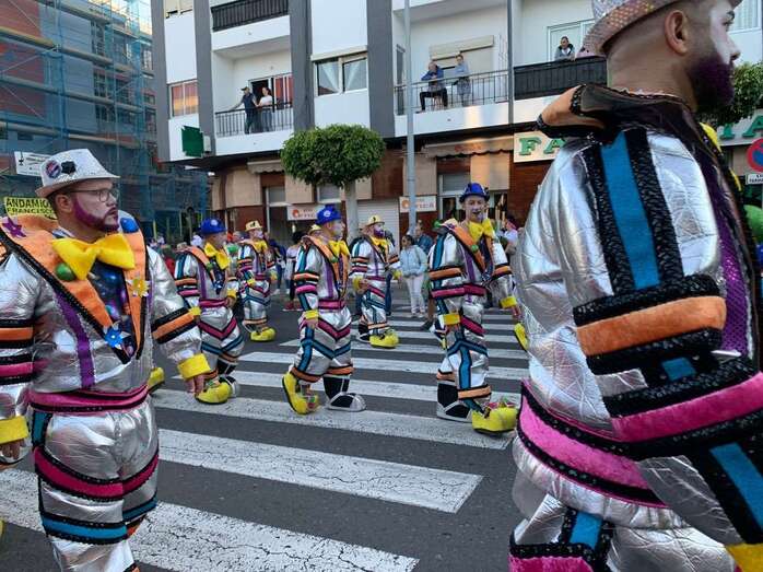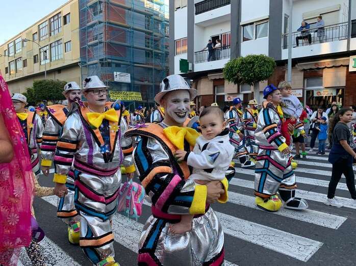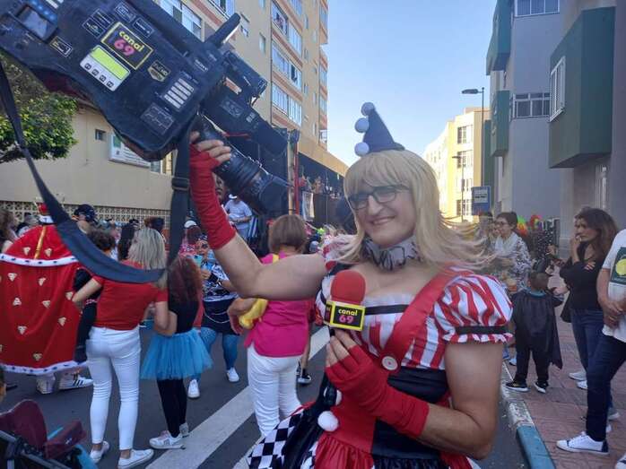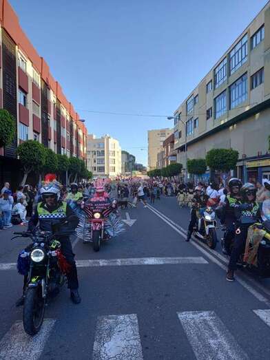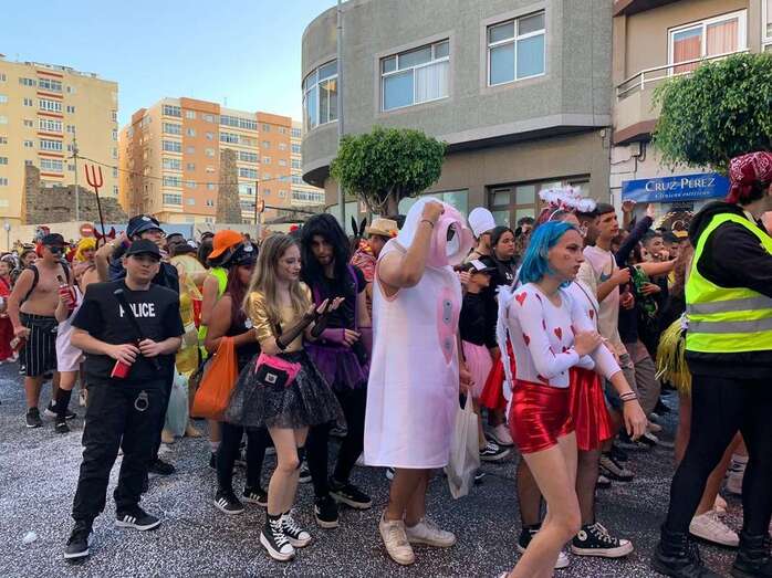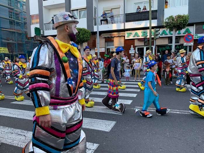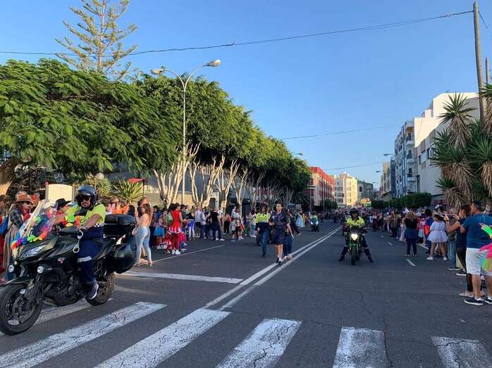 El coso carnavalero se puso en marcha a partir de las 17.30 horas en las Ramblas de Pedro Lezcano con la participación de 20 carrozas y coches engalanados, la batucada Paixao, la comparsa Nuevo Estilo y las murgas teldenses Las Golisnionas, Los Nietos de SaryMánchez y Los Diver, marcaban el ritmo al que iban bailando las mascaritas.