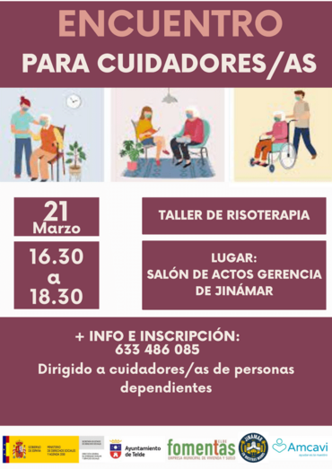 El Ayuntamiento de Telde, a través del Plan Integral de Jinámar, inicia la próxima semana una serie de encuentros destinado a cuidadores y cuidadoras de personas dependientes. La primera de las actividades es un taller de risoterapia que tendrá lugar el día 21 de marzo, de 16.30 a 18.30 horas, en el Centro Cívico de Jinámar (antigua Gerencia).