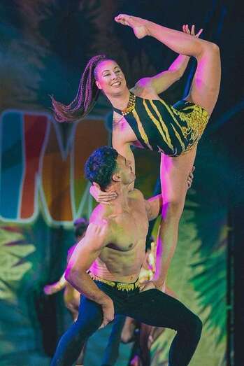 El espectáculo acrobático del teldense Levi y Estrella impresiona en el Carnaval de Maspalomas