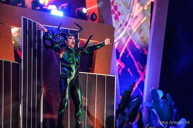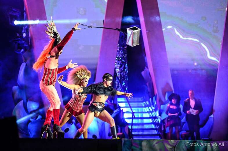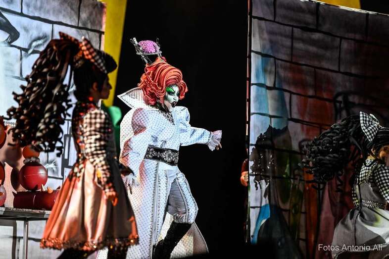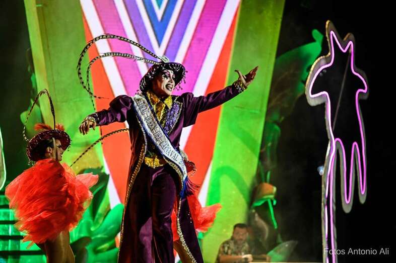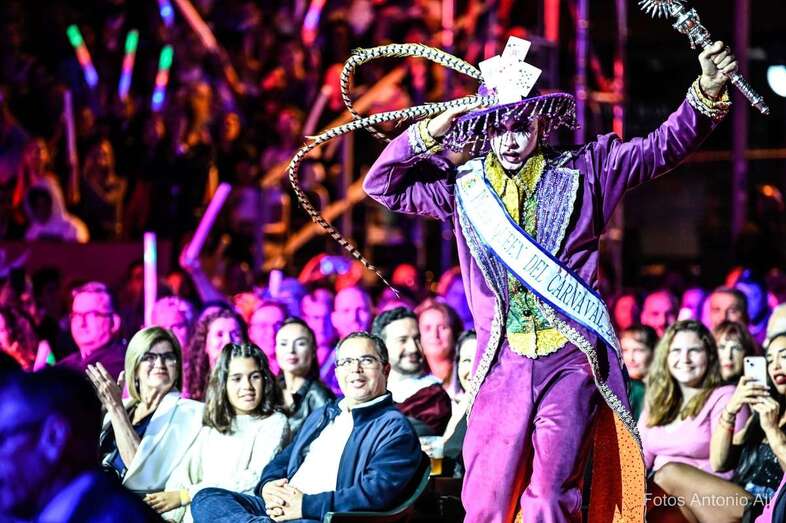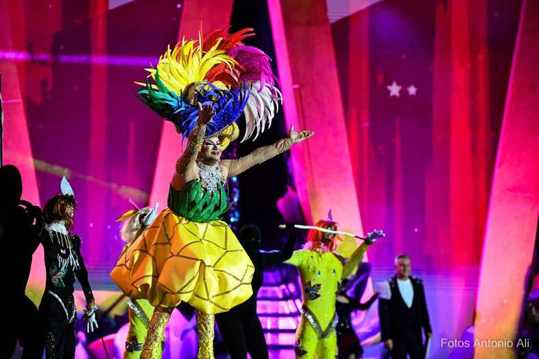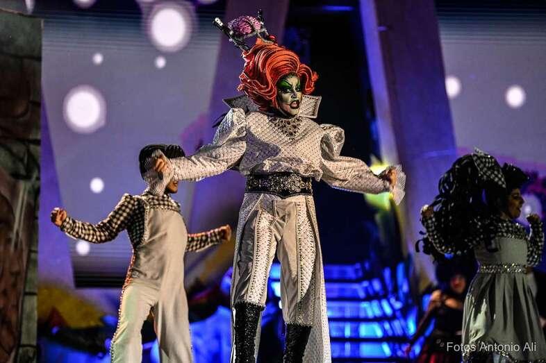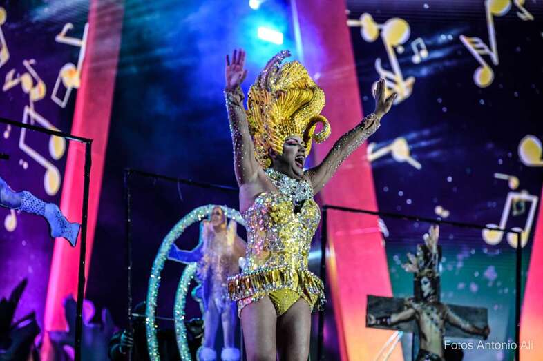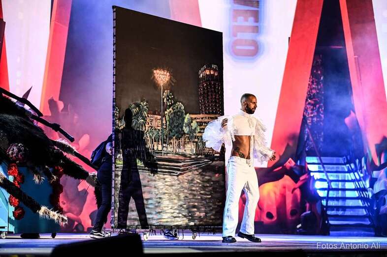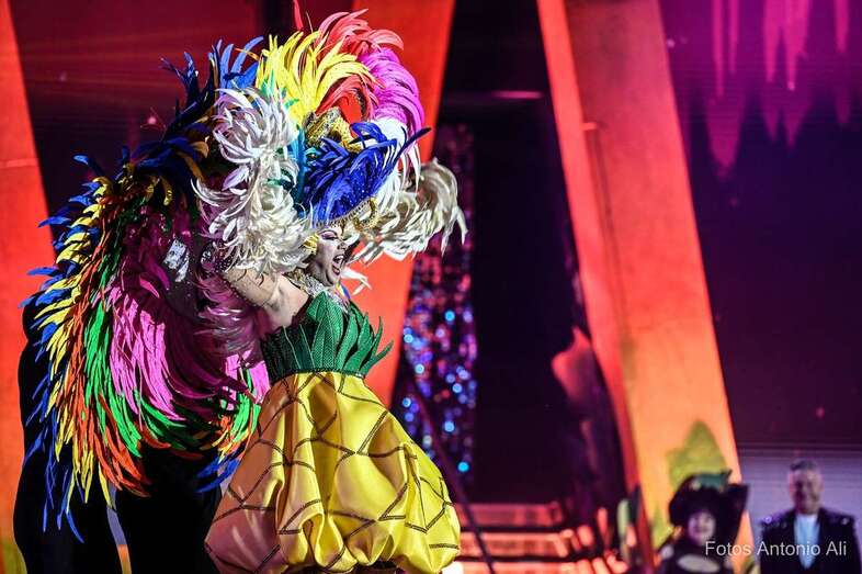 El teldense Neftalí Betancor, Drag Ácrux, con la fantasía ¡Todo por la corona!, de los diseñadores Fran Rodríguez y Sebastián Betancor y patrocinado por Secret ́s Garden, Cheyennes ́s, Divinity; Kayak El Pajar y Miss y Mister Fotogenia.
