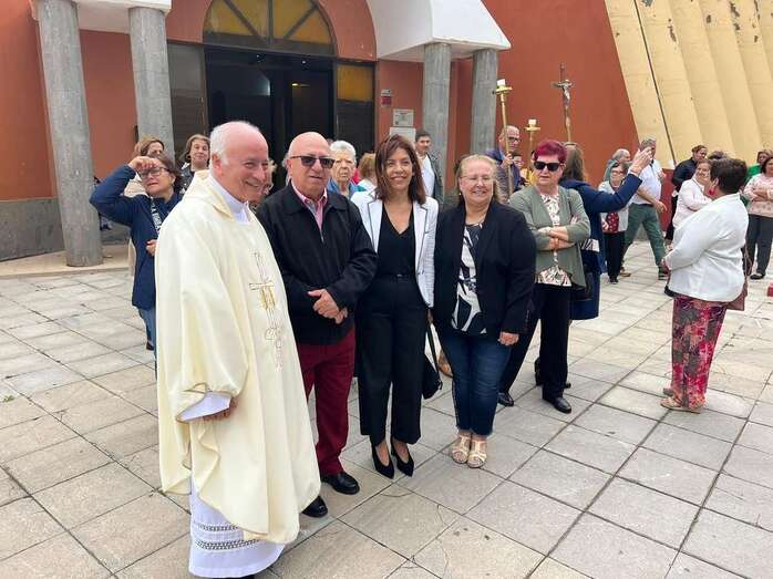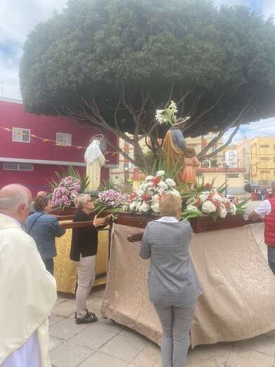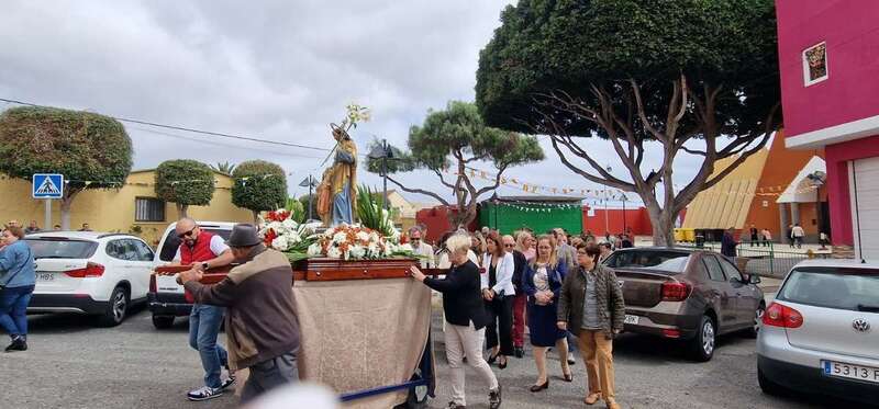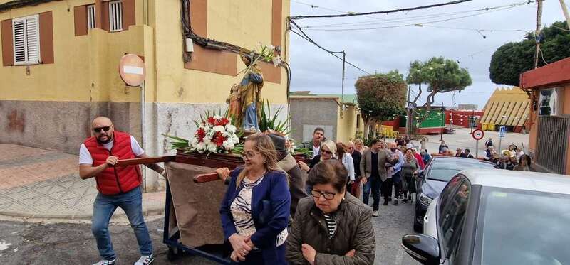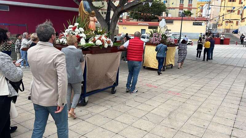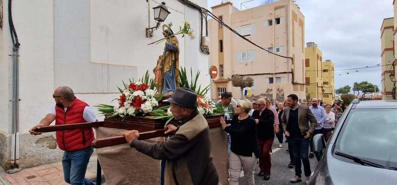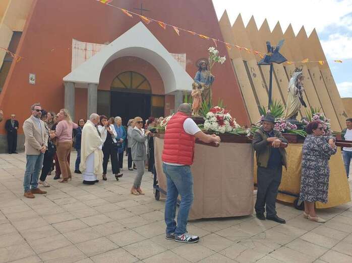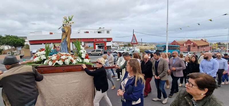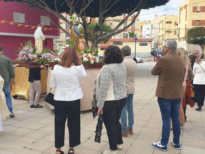 Tras la misa cantada y oficiada por el párroco Juan S. Quintana que comenzó a las 10.00 horas, la comitiva religiosa con los tronos de San José y la Virgen del Carmen salió de templo para realizar el recorrido por este enclave poblacional con el acompañamiento de la alcaldesa Carmen Hernández, el pregonero de las fiestas, Juan Domínguez, y un nutrido grupo de feligreses y de autoridades locales, entre las que se encontraban también el vicealcalde Héctor Suárez, varios ediles del Gobierno (Celeste López, Eloy Santana, Jonay López y Sergio Suárez) y las dos concejalas del Partido Popular (Sonsoles Martín y Maria Eugenia Melián), unicos miembros de la oposición que asistieron al evento religioso.