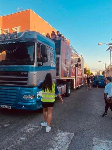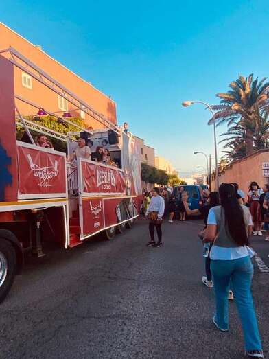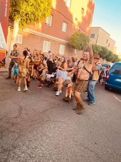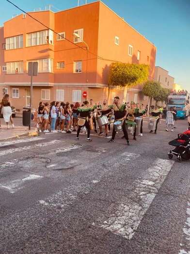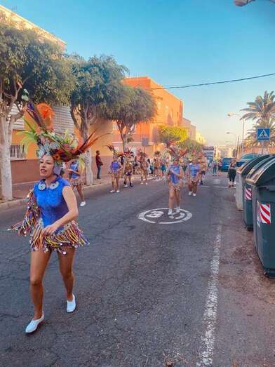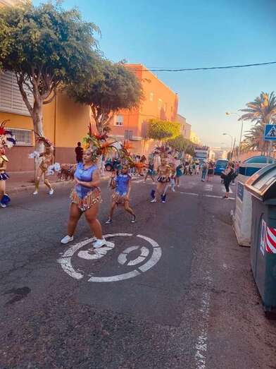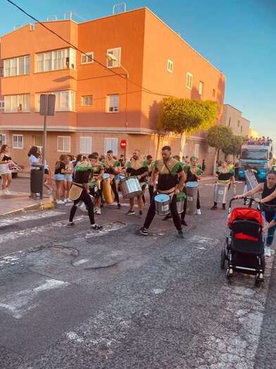 El recorrido festivo por las calles Asia, Picasso, Numancia, César Vallejo, África, Daoiz, Numancia, Picasso y Profesora Josefina Suárez Ramírez estuvo animado por la batucada Percunama, la comparsa Chiramay y la carroza Lucano.