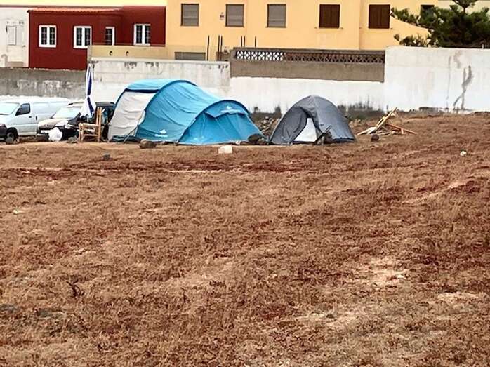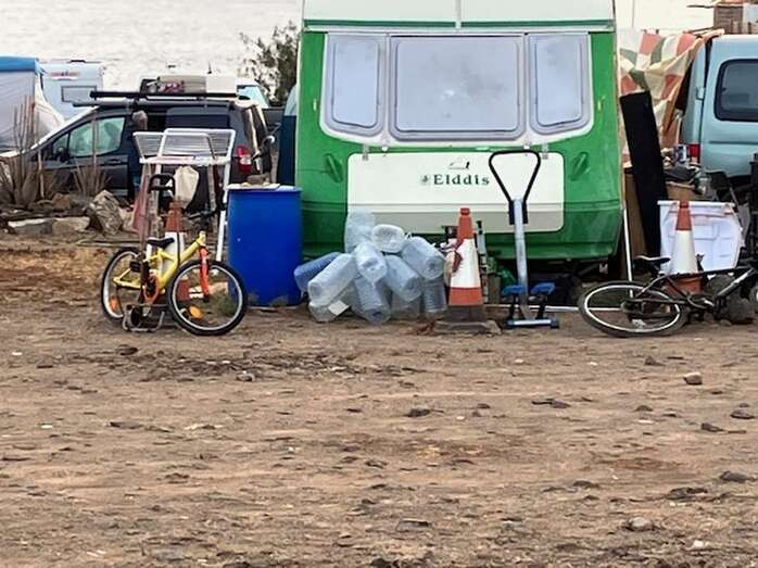 Vecinos de Hoya del Pozo denuncian que esta zona de la costa de Telde se ha vuelto a convertir en un punto de acampada, con presencia en estos días de casetas y caravanas, algo no permitido por las ordenanzas municipales.