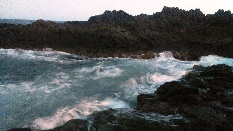 El cuerpo de la tortuga se encontraba a merced del fuerte oleaje que ha azotado durante esta jornada este sector de la costa de Telde.
